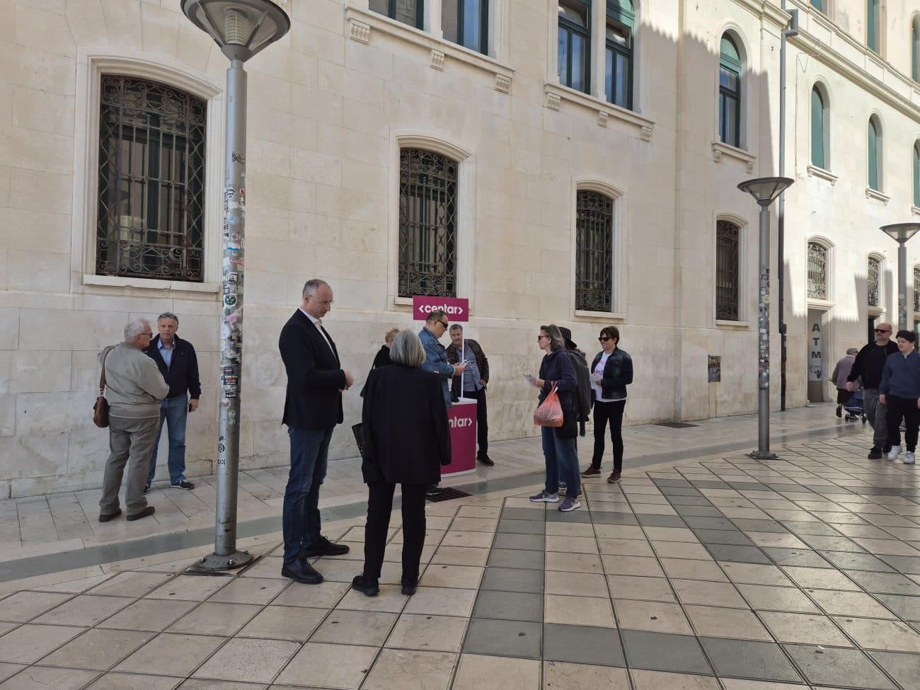 Stranka Centar na dnu Marmontove ulice postavila je svoj štand, a građani u prolazu mogu porazgovarati i sa splitskim gradonačelnikom Ivicom Puljkom, koji je kandidat i na ovogodišnjim izborima.