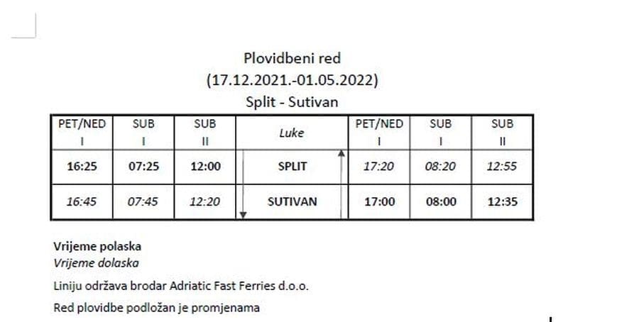U petak 17. prosinca 2021. brodar Adriatic Fast Ferries d.o.o. započinje s održavanjem brzobrodske linije od Splita prema Sutivanu na Braču i obratno.
