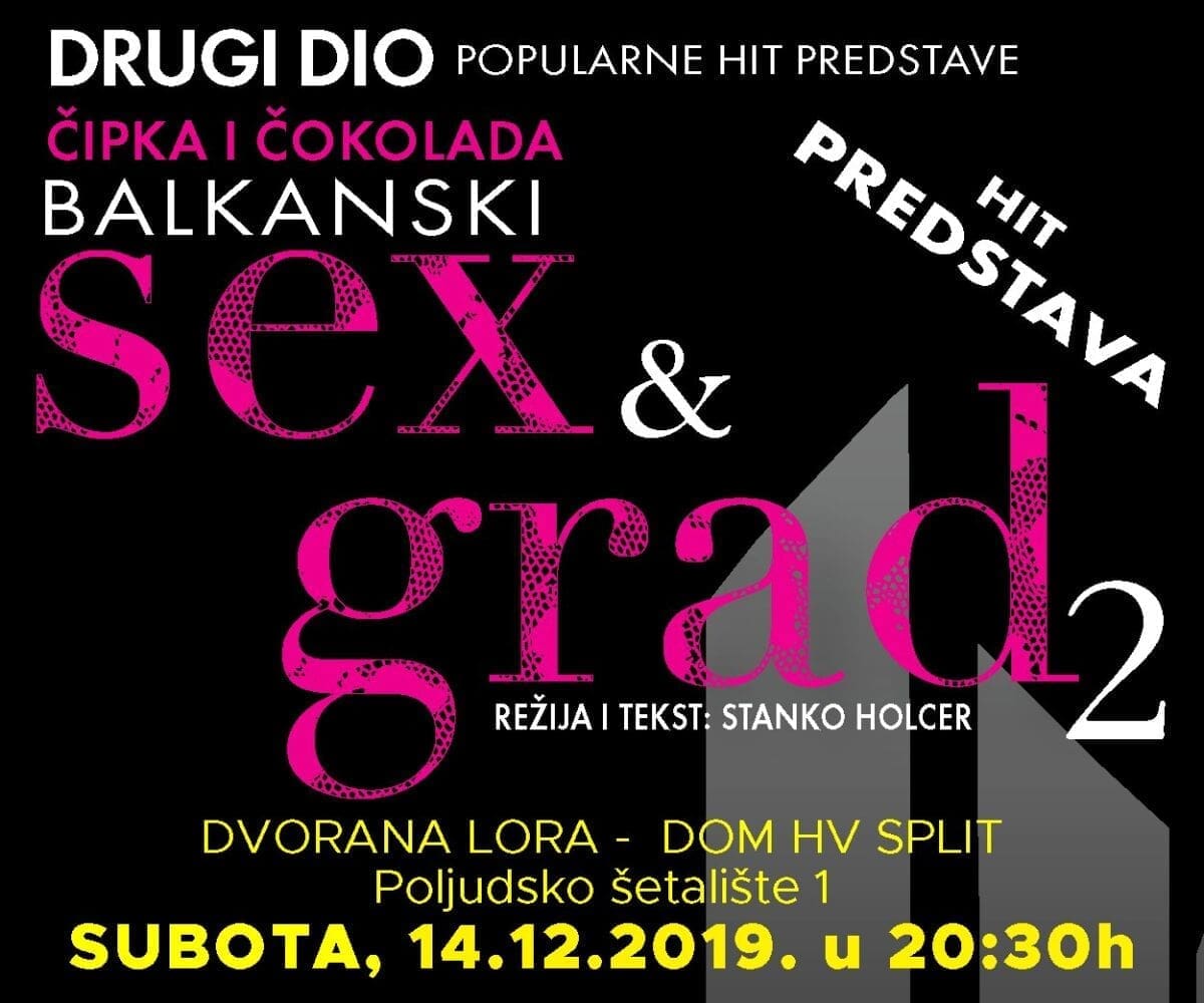 Predstava „Balkanski seks i grad, čipka i čokolada 2“ – drugi dio, održat će se u subotu, 14.12.2019., u 20,30 sati, u Dvorani Lora – Dom HV-a Split.