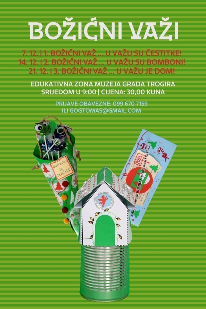 "Božićni važi" u sebi kriju čestitke, bombone i dom, a odvijat će se 7., 14. i 21. prosinca s početkom u 9:00 sati pod vodstvom više kustosice pedagoginje Goranke Tomaš.