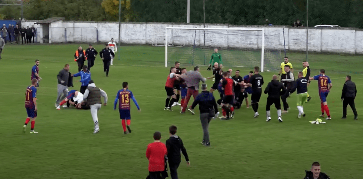 Domaćin je pobijedio s 3:1, ali nisu stigli slaviti jer je došlo do masovne tučnjave među igračima obje momčadi. Udaralo se šakama i nogama, a odmah su intervenirali i policajci, koji su na kraju uspjeli smiriti situaciju.