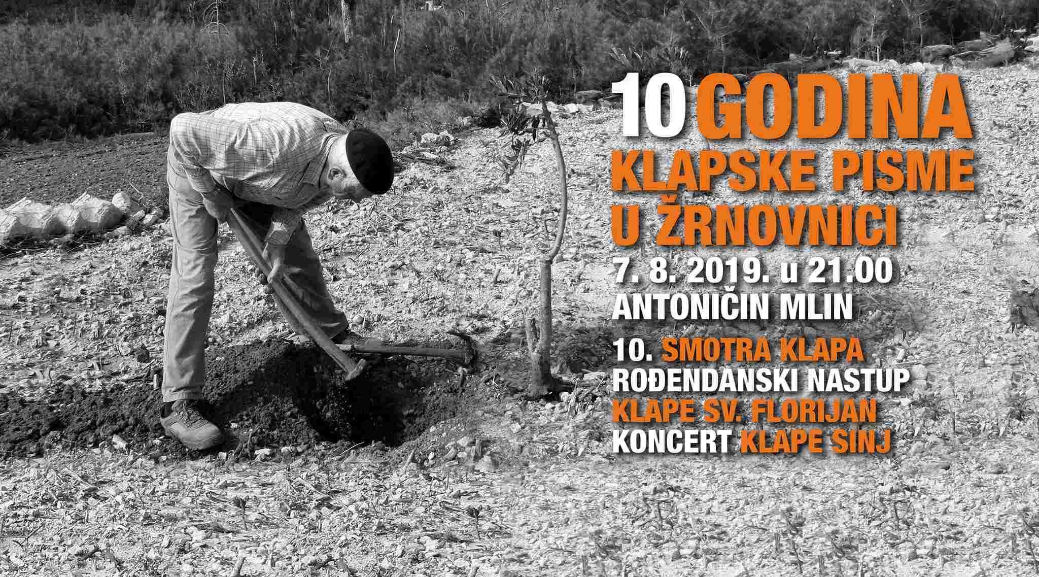 Godina po godinu, i Žrnovnica će za nekoliko dana ugostiti svoju desetu smotru klapa. Jubilarno izdanje Smotre klapa u Žrnovnici dogodit će se 7. kolovoza (srijeda) s početkom u 21 sat i to u Seoskom gospodarstvu Antoničin mlin. Organizator smotre je udruga Žrvanj. Sve je krenulo u ljeto 2010. nakon pobjede klape Sveti Florijan na 50. Splitskom festivalu. Žrnovčani su tada ostvarili apsolutnu pobjedu s pjesmom "Kako ću joj reć' da varin", a njihovo mjesto im je priredilo doček za pamćenje. Članovi klape su u znak zahvale prema svom mjestu pokrenuli smotru klapa koja je posljednjih deset godina izrasla u jedan od najvažnijih klapskih događaja šireg splitskog područja.