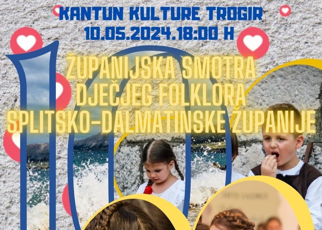 Savez kulturno-umjetničkih društava Splitsko-dalmatinske županije, uz generalno pokroviteljstvo Županije splitsko-dalmatinske, po deseti put organizira Smotru dječjeg folklora Splitsko-dalmatinske županije, ove godine u gradu Trogiru. Domaćin jubilarne 10. smotre dječjeg folklora naše županije je članica SKUD-a: Kulturno-umjetničko društvo “Kvadrilja” iz Trogira. Grad Trogir je benevolentno ustupio novouređene prostore Kantuna Kulture za realizaciju ovogodišnje smotre. Ista će biti organizirana u petak, 10.05.2024. godine s početkom u 18:00.