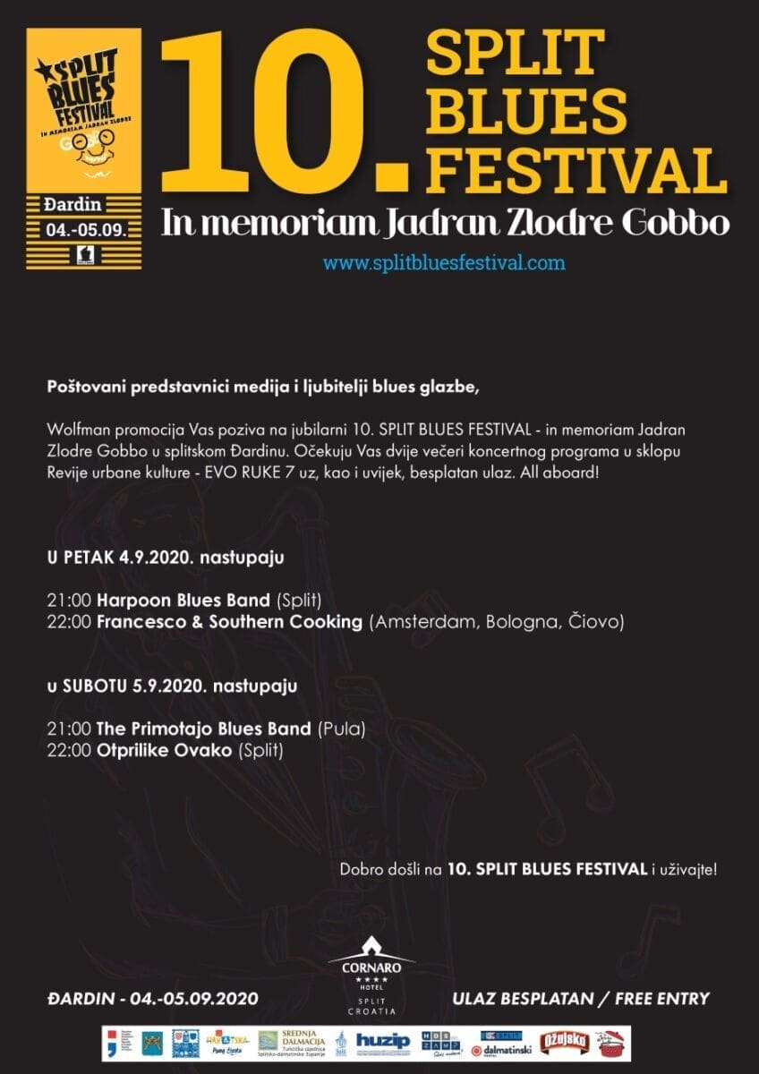 Pred nama je jubilej. 4 i 5. rujna u splitskom Đardinu Split Blues Festival - In memoriam Jadran Zlodre Gobbo slavi svoj deseti rođendan. Rodija se na Prokurative, živija je na Rivi, u Đardinu, na Zvončacu i evo ga natrag u splitski Đardin. Uz besplatan ulaz kao i uvijek, nije se nakitija pinezi, ali je izmamija na lice puno osmijeha, sreće i zadovoljstva. I učinija da se za Split zna kod bluzera širom svita.