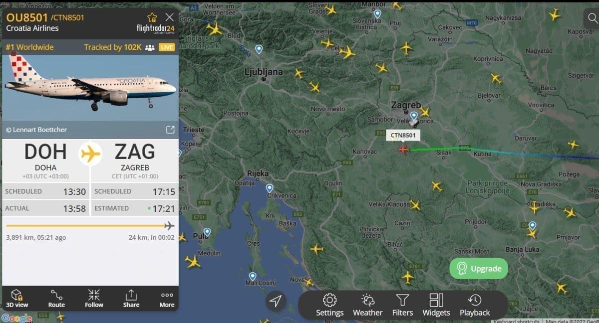 Preko stranice flightradar više od 100 tisuća ljudi prati gdje se upravo nalazi avion u kojem su naši Vatreni.