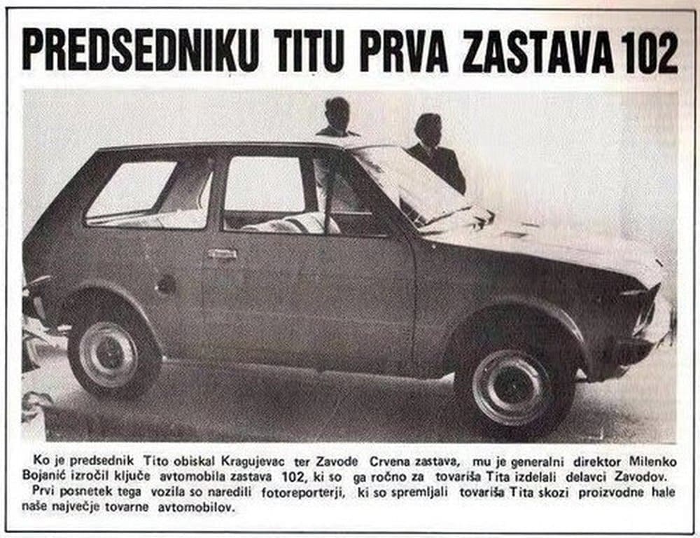 Nakon Zastave 101 (Stojadina), drugi 'potpuno domaći' auto trebao je ponijeti oznaku 102, a prvi je primjerak obećan 'najvećem sinu naših naroda i narodnosti. U posljednji tren, pola godine nakon smrti Josipa Broza Tita, kao iznenađenje, saznalo se novo ime - Jugo 45