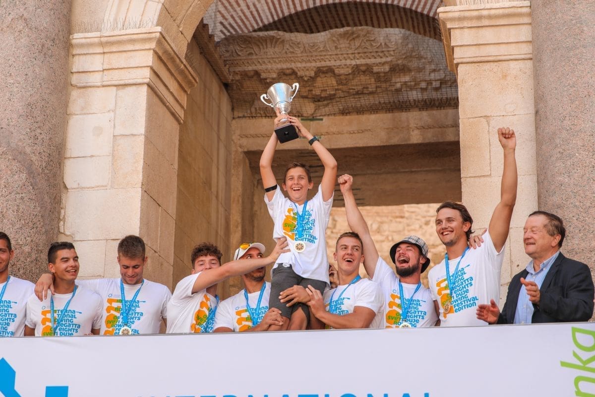 U do kraja napetoj finalnoj utrci 19. Regate Sveti Duje, a na veliko zadovoljstvo okupljenih Splićana i njihovih gostiju, slavili su domaćini s 13 stotinki prednosti. Veslači su zatim, preselili na Peristil gdje je u predivnom ambijentu povijesnog dijela grada Splita, održana dodjela odličja koju su uveličali predstavnici organizatora i uzvanika: rektor Sveučilišta u Splitu Dragan Ljutić i rektor Sveučilišta u Zagrebu Damir Boras. Legendama Splita priznanja je dodijelio predsjednik HVK Gusar, Ivica Botica, a gostima iz Cambridgea, saborski zastupnik i izaslanik Predsjednika Vlade Republike Hrvatske, Ante Bačić.