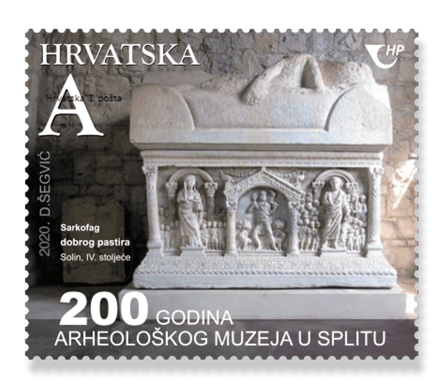 Hrvatska pošta pustit će u optjecaj 17. kolovoza 2020. novuprigodnu poštansku marku u povodu 200. obljetnice Arheološkog muzeja u Splitu. Motiv na markije sarkofag dobrog pastira, koji potječe iz Solina, iz 4. stoljeća. Autor marke je Duje Šegvić, dizajner iz Splita. Vrijednost marke označena je slovom oznakom „A“ što odgovara iznosima poštarina za pismo mase do 50 g u unutarnjem prometu te za dopisnicu/razglednicu u unutarnjem prometu.