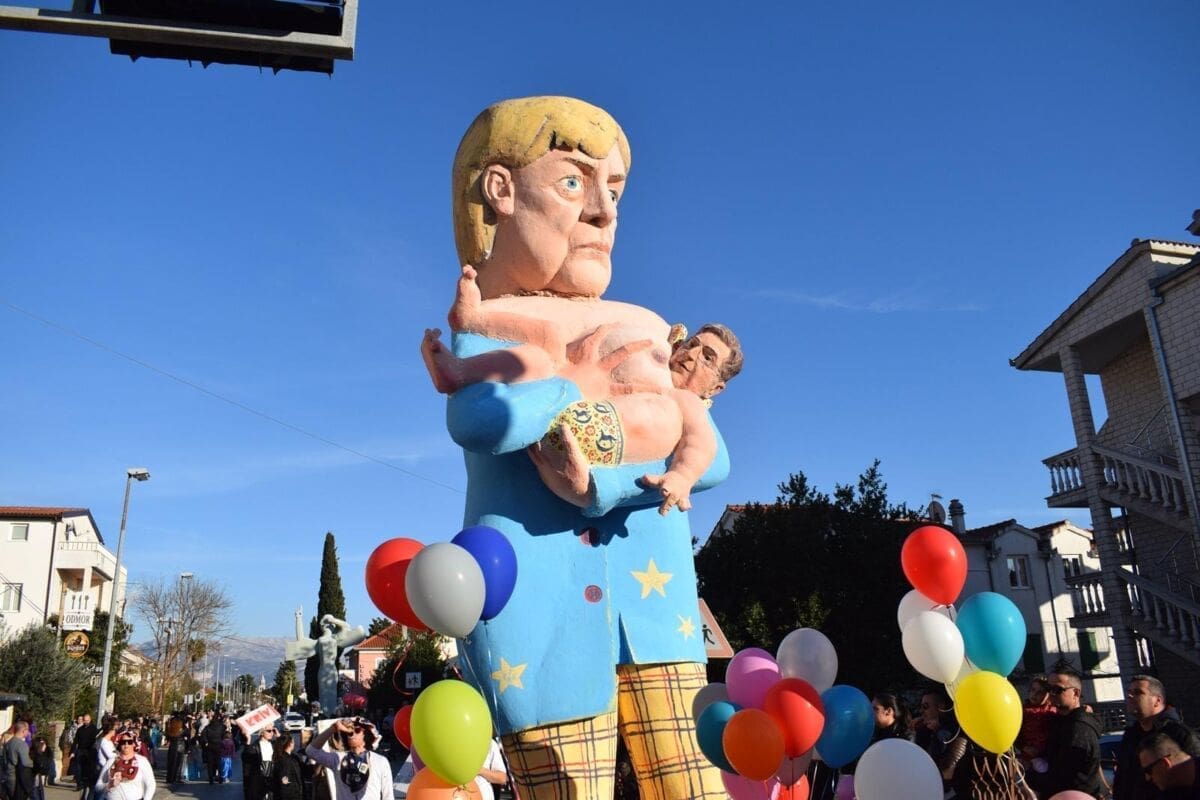 Lik ''majke'' Angele Merkel i djeteta u liku Andreja Plenkovića koji sisa majku je karikatura stanja u državi. Tradicija nalaže da se osudi i zapali krnje, krivac za sve naše nedaće i probleme te je tako osuđena i spaljena Božica pravde kojom su članovi Polantane htjeli ukazati na stanje sudstva u državi.