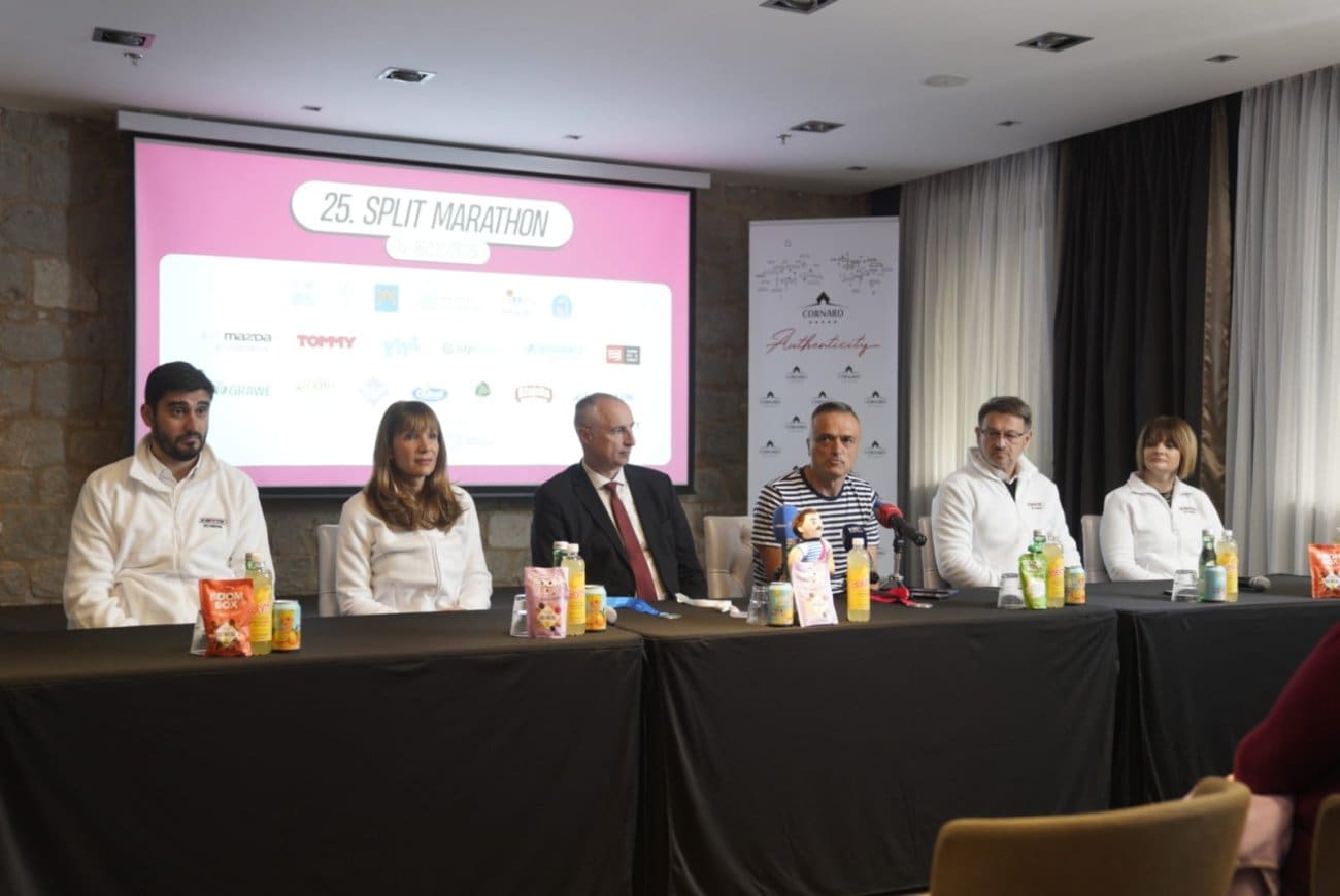 Splitski gradonačelnik Ivica Puljak, njegov solinski kolega Dalibor Ninčević, zamjenik župana SDŽ Stipe Čogelja, diretorica TZ Grada Splita Alijana Vukšić, zamjenica direktorice TZ SDŽ JuranaBatovanja i zamjenica predsjednik organizacijskog odbora Kristijan Sindik predstavili su ovogodišnji Splitski maraton, 25. po redu.