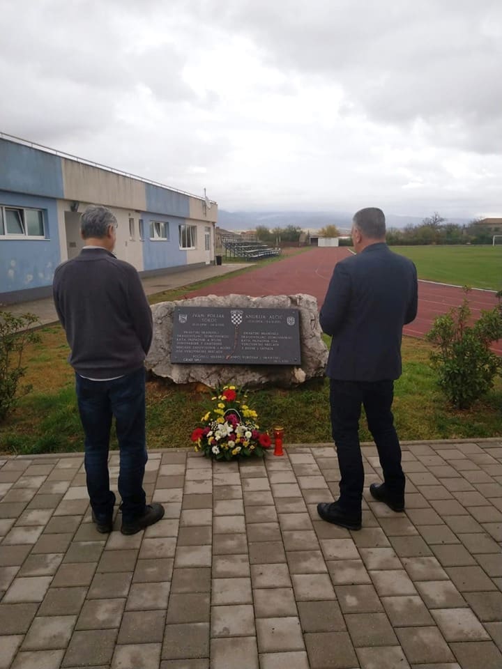 Jutros je Miro Bulj ispred spomenika na sportskom centru u Sinju, koji nosi imena ovih dvaju heroja Vukovara, zapalio svijeće s bratom pok. Ivice Poljaka Sokola, Željkom Poljakom, vanjskim članom Odbora za ratne veterane Hrvatskog sabora.