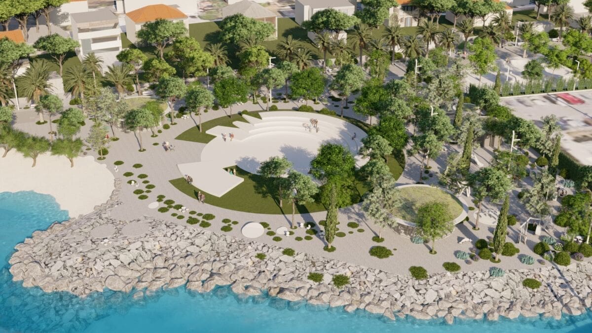 - Centralni prostor je oblikovno čist i jednostavan, a sve oko njega je gusto zazelenjeno kombinacijom zimzelenih i listopadnih vrsta. Na taj način će biti uvijek nešto zeleno, zimi će sunce prodirati u sve dijelove, a ljeti će, s vremenom, sve biti u dubokoj hladovini. Miješana šuma s kombinacijom postojećih lepezastih palmi, alepskih borova, koštela, maslina i dodanih četkastih palmi, čempresa, pinija, besplodnih murvi, lipa i platana bila bi posebno otporna na napade nametnika, kao što bi dala poseban karakter kroz sva godišnja doba – ističe autor projekta Filip Tadin.