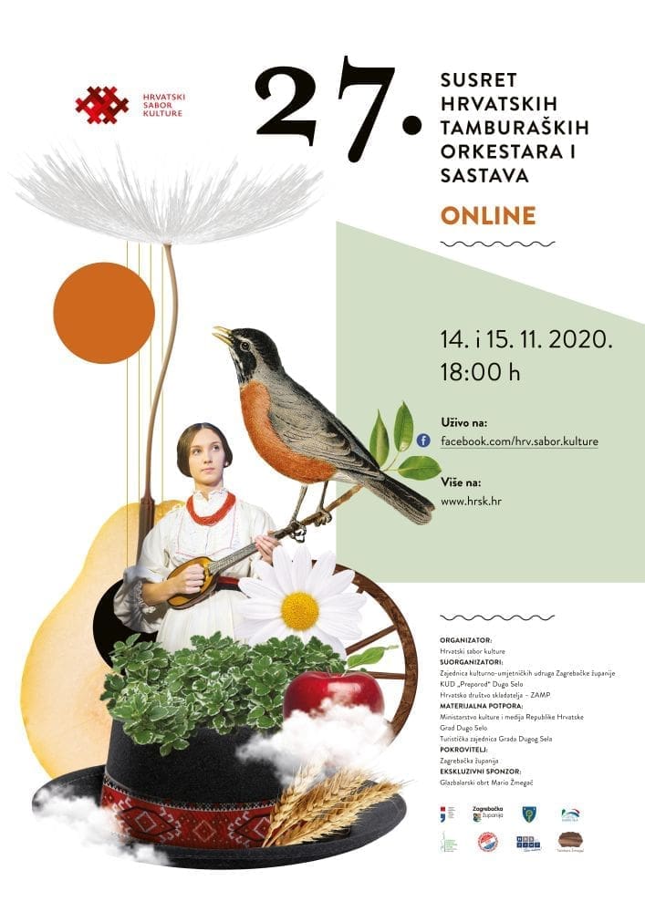 U organizaciji Hrvatskog sabora kulture i suorganizaciji Zajednice kulturno umjetničkih udruga Zagrebačke županije, KUD-a „Preporod“ Dugo Selo i HDS ZAMP-a, putem Facebook stranice HSK-a 14. i 15. studenoga 2020. s početkom u 18 sati bit će održan 27. Susret hrvatskih tamburaških orkestara i sastava.