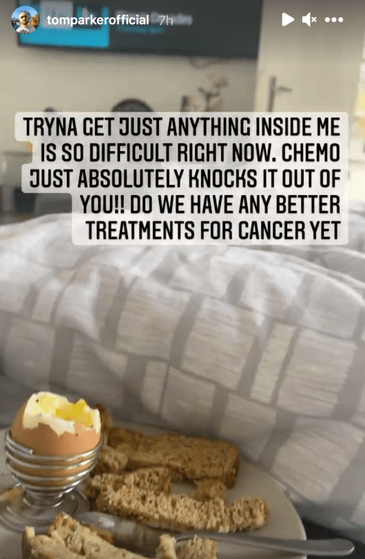"Trenutno je preteško ubaciti bilo što u sebe. Kemoterapija te apsolutno obori. Ima li nekih boljih načina liječenja tumora?" napisao je Tom na Instagram Storyju.
