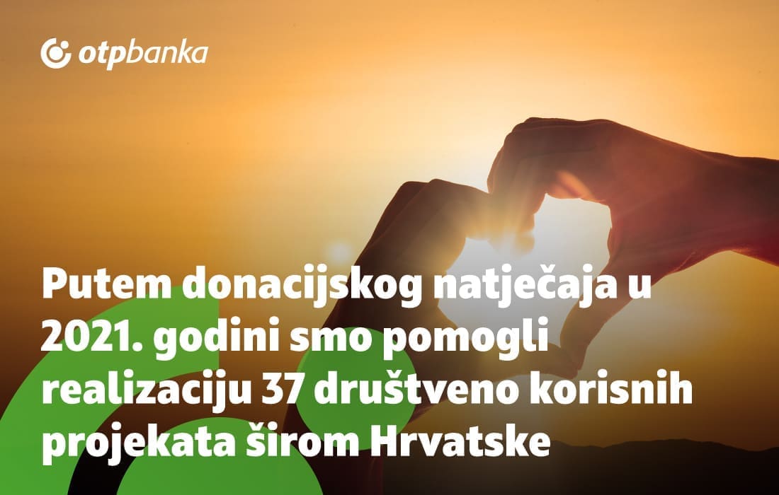 Desetu godinu zaredom OTP banka d.d. je organizirala javni natječaj za dodjelu donacija na koji su se mogli prijaviti projekti u četiri kategorije: mladi, obrazovanje i znanost, očuvanje kulturne, povijesne i tradicijske baštine te očuvanje okoliša, humanitarni projekti i sport. Na natječaj je pristiglo više stotina prijava iz cijele Hrvatske, a natječajno povjerenstvo odabralo je 37 projekata. Odabrani projekti su se istaknuli svojom kvalitetom i jasnim doprinosom društvu, a posebno zajednici koja je projektom obuhvaćena.