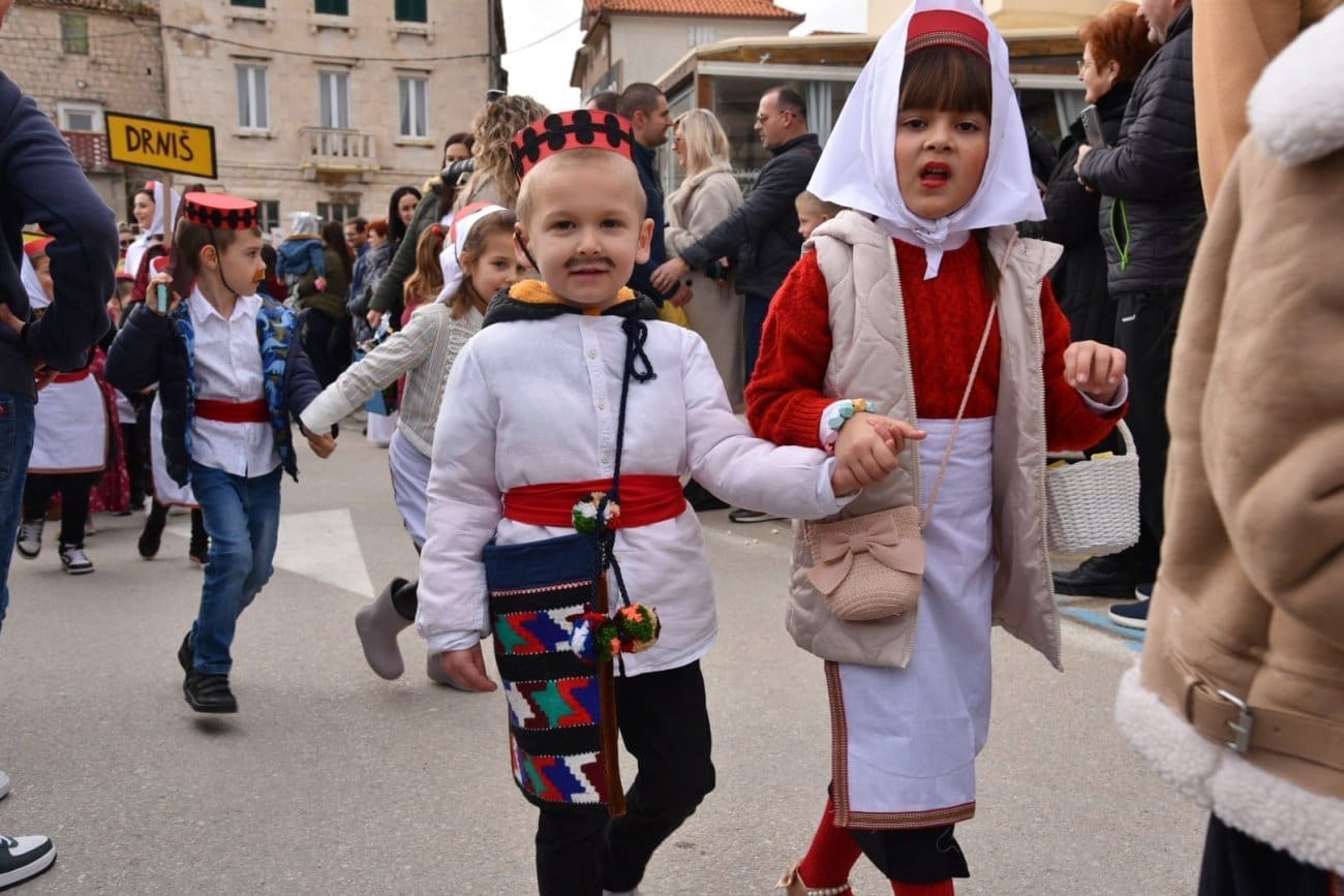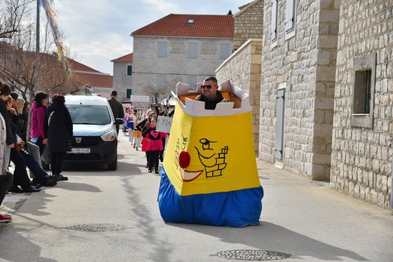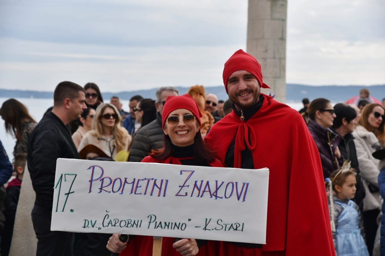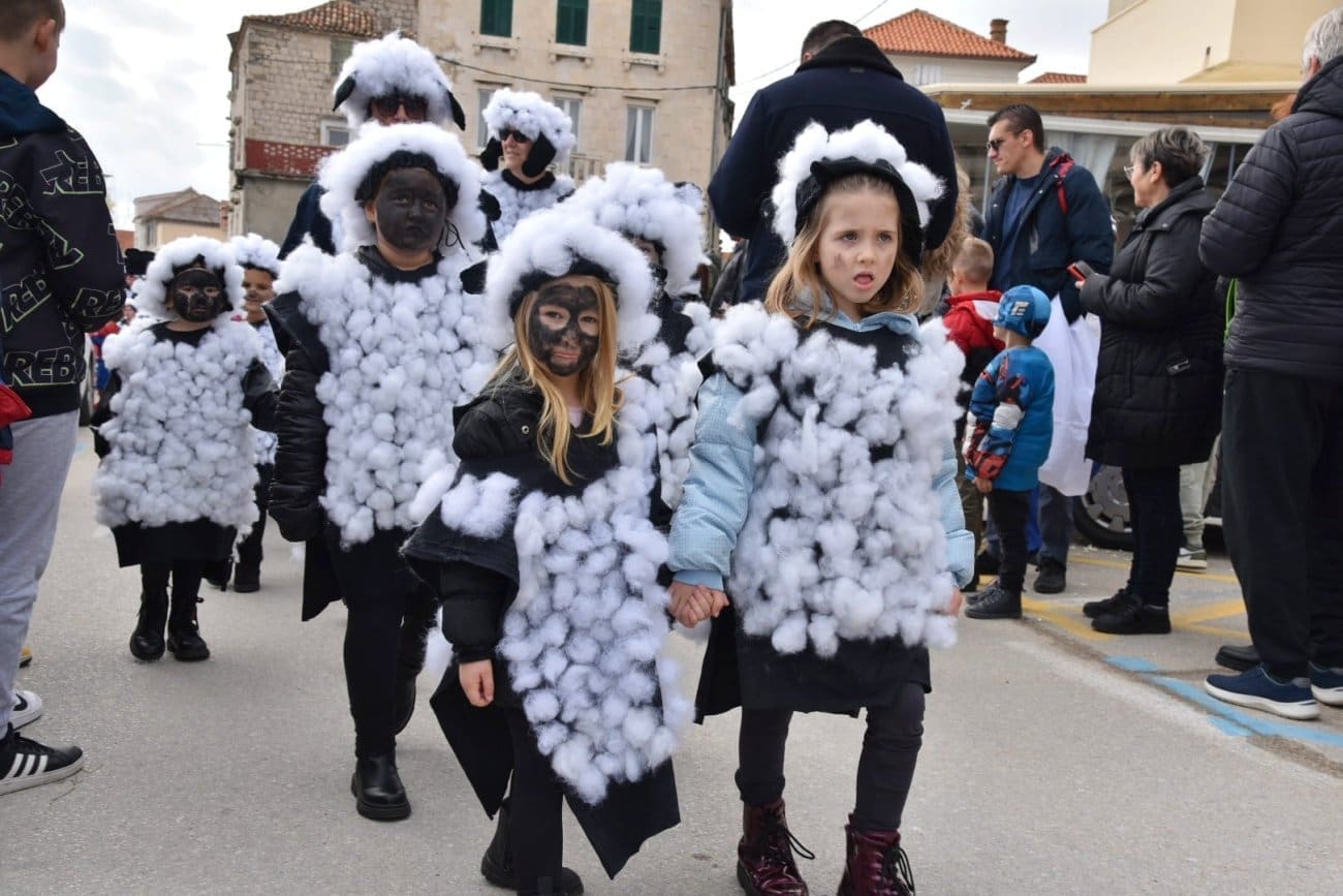 Povorka je krenula iz Lucijinog puta preko donjokaštelanske rive pa do parkinga ex. Plavi jadran, gdje je za sve sudionike organizirana zakuska i zabavni program. U 21. točki predstavila su se djeca iz odgojno-obrazovnih udruga pa smo mogli uživati u raznim maštovitim maskama koje su izradile vrijedne ruke teta iz vrtića. Puna donjokaštelanska riva ove nedjelje uživala je gledajući male vlaje, ribare, eskime, semafore, ovčice i mnoge druge. Ovogodišnji krnje, krivac za sve poteškoće djece, je Razmaženko Marendić.