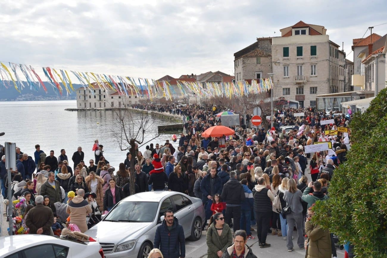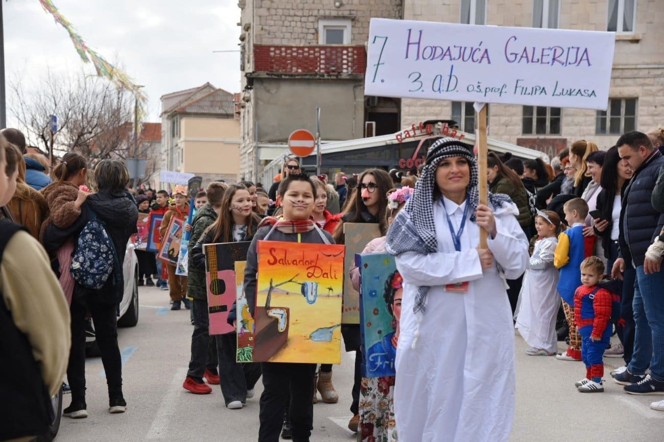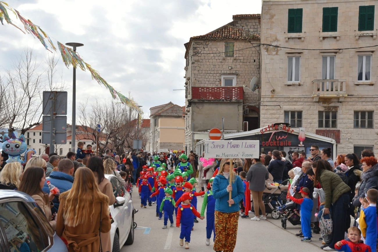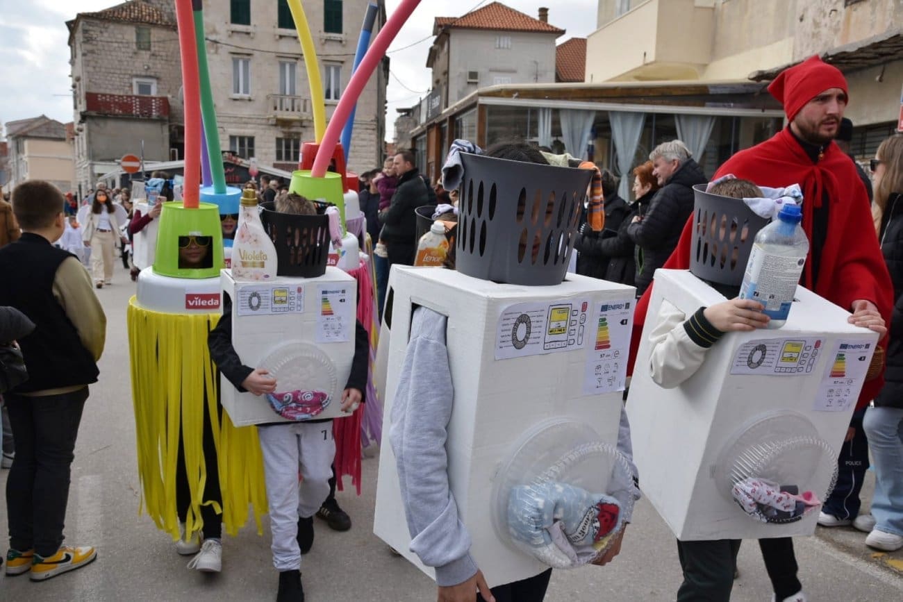 Povorka je krenula iz Lucijinog puta preko donjokaštelanske rive pa do parkinga ex. Plavi jadran, gdje je za sve sudionike organizirana zakuska i zabavni program. U 21. točki predstavila su se djeca iz odgojno-obrazovnih udruga pa smo mogli uživati u raznim maštovitim maskama koje su izradile vrijedne ruke teta iz vrtića. Puna donjokaštelanska riva ove nedjelje uživala je gledajući male vlaje, ribare, eskime, semafore, ovčice i mnoge druge. Ovogodišnji krnje, krivac za sve poteškoće djece, je Razmaženko Marendić.