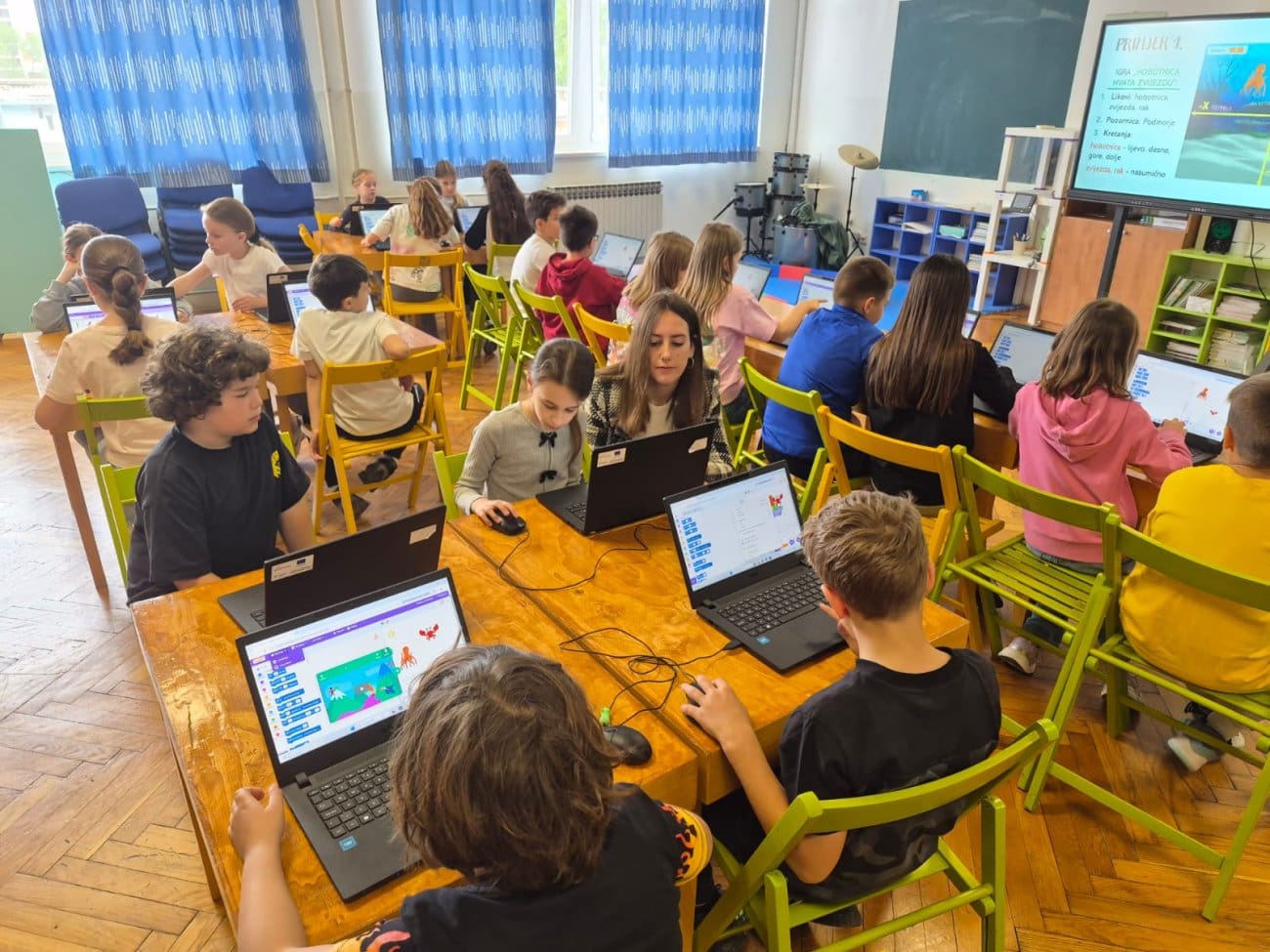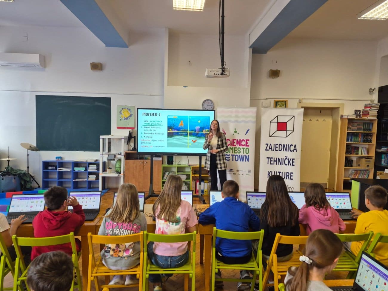 Radionica blokovskog programiranja, pod vodstvom Josipe Šimunović, vanjske suradnice Zajednice, učenicima je omogućila prve korake u svijetu programiranja na pristupačan i zanimljiv način. Korištenjem vizualnih programskih alata učenici su slagali logičke cjeline u obliku blokova te postupno izrađivali vlastite jednostavne igrice i animacije. Kroz ovaj proces razvijali su razmišljanje, logiku, kreativnost i sposobnost rješavanja problema.