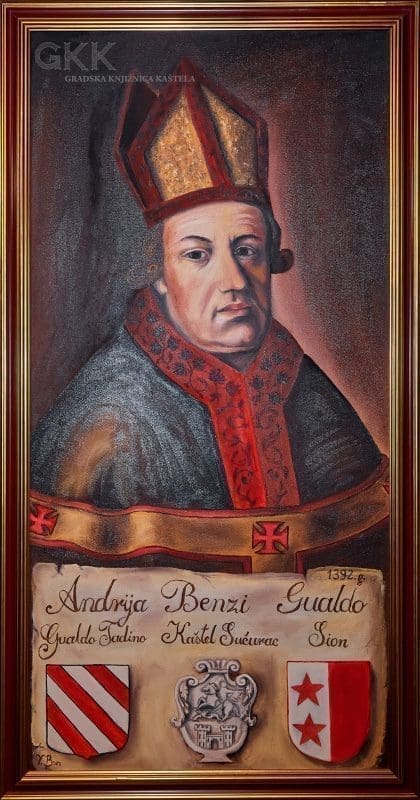 Iznenađenje za sve nazočne je bio portret utemeljitelja današnjeg Kaštel Sućurca Andrije Benzija, kao i njegov grb, a sve je izloženo na kamenim zidovima utvrde u prizemlju. Pojašnjenje je dao Dragan Kovač, koji je naveo kako je do važnih saznanja u svezi Andrije Benzija došao prije 13 godina, povezavši se s muzejem u mjestu Gualdo di Tadino u Italiji, rodnom mjestu Andrije Benzija te s muzejem u Sionu, gdje je nadbiskupovo posljednje počivalište. “Naime, do tada se u javnosti Andrija Benzi spominjao kao Andrija Gualdo, a ustvari je njegovo prezime Benzi, dok je Gualdo njegovo rodno mjesto. Istom prilikom sam uspio nabaviti njegovu sliku, prema kojoj sam dao izraditi Andrijin portret, a na portretu su i tri grba – grb Andrije Benzija, grb Kaštel Sućurca i grb Siona, gdje je biskup pokopan”, dodao je Dragan Kovač.