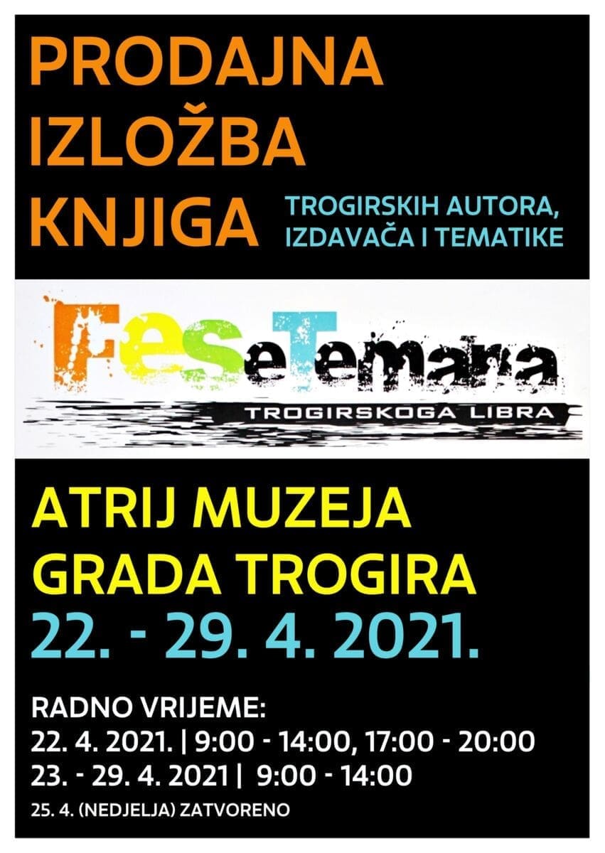 9. FESeTemana trogirskoga libra - tradicionalni festival knjiga trogirskih autora, izdavača i knjiga s trogirskim temama održavati će se u atriju Muzeja grada Trogira od 22. do 29. travnja 2021. godine.