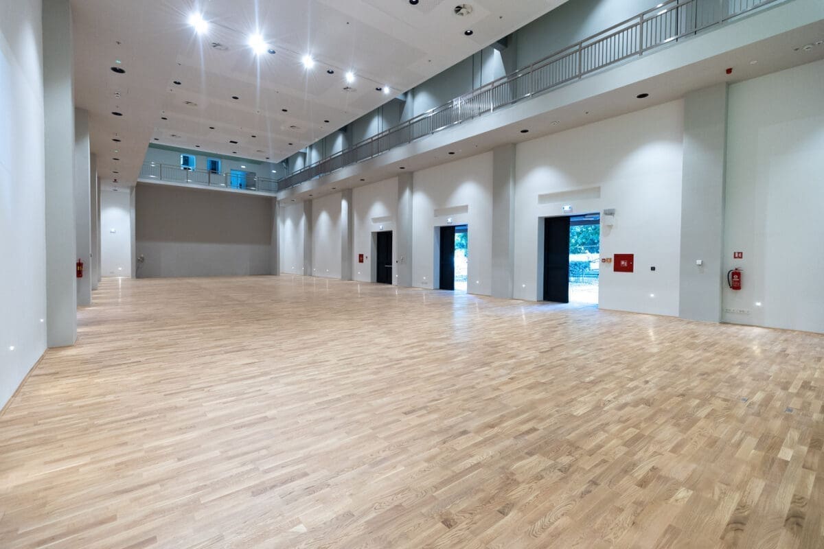 Glavna dvorana površine je cca 369,50 m2, ukupnog kapaciteta do 450 korisnika ostvarenog preko 182 sjedećih mjesta na teleskopskim tribinama (14 redova po 13 sjedećih mjesta) i 123 sjedećih mjesta na pomičnim stolicama i cca 100 stajaćih mjesta na galeriji te su dodani sadržaji: dizalo, caffe-bar s pripadajućim prostorijama, garderoba i sanitarni čvorovi za izvođače, tonski studio, ured za zaposlenike, prostor za udruge i druge potrebne servisne i tehničke prostore. Dvorana će biti opremljena i demontažnom pozornicom dimenzija 8 x 3 m. Pomičnom pregradom dvorana će se pregrađivati u dva dijela u kojima se mogu odvijati zasebni događaji, jedan manji površine cca 80 m2 (cca 9,20 x 8,70 m) te veći površine cca 289,50 m2. Glavni prostor dvorane je višestruke namjene – kino projekcije, koncerti, predavanja, tribine i razni drugi skupovi i događanja.