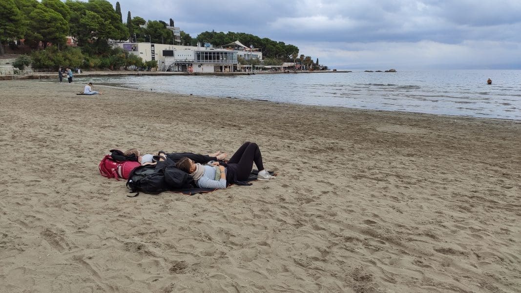 Temperatura mora je i dalje ugodna za kupanje, oko 21 Celzijev stupanj, a slična je i temperatura zraka. Posjetili smo u popodnevnim satima plažu Bačvice, koja je gotovo pa prazna. Teško je za povjerovati da je prije pet dana plaža bila puna turista i domaćih kupača.