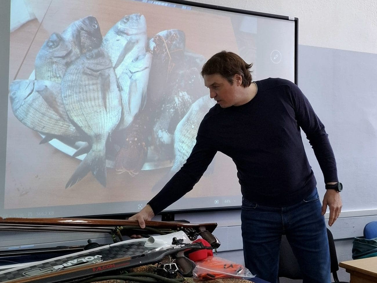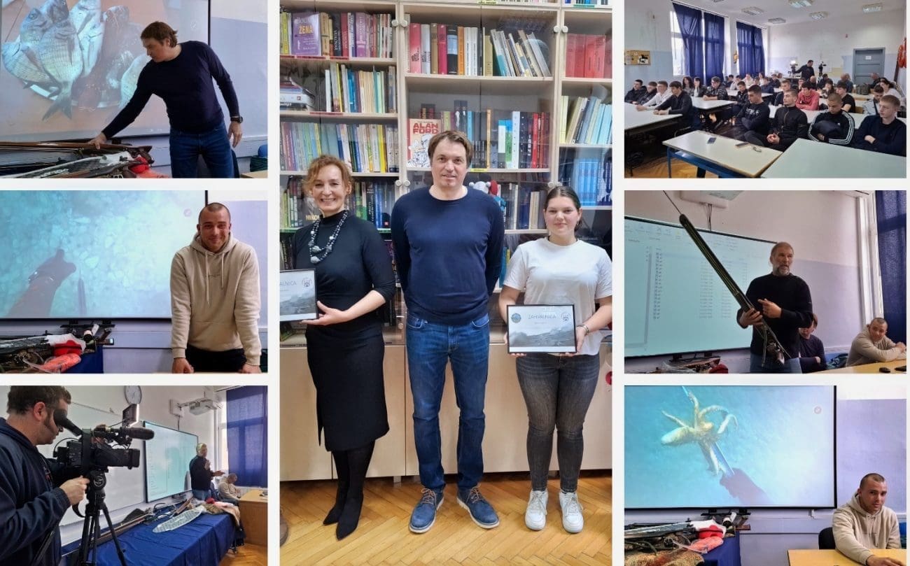 U najvećoj učionici škole, kroz izravne razgovore s panelistima, uz izloženu opremu za podvodni ribolov te putem fotografija i videozapisa, učenici su imali priliku "zaroniti" u svijet podvodnog ribolova, i to u društvu vrhunskih morskih stručnjaka.