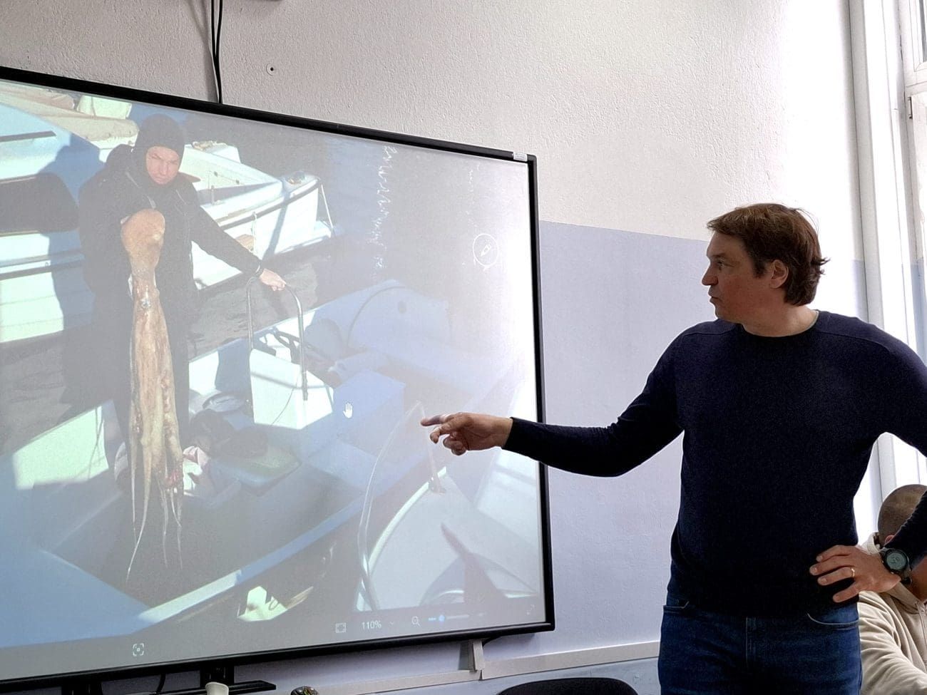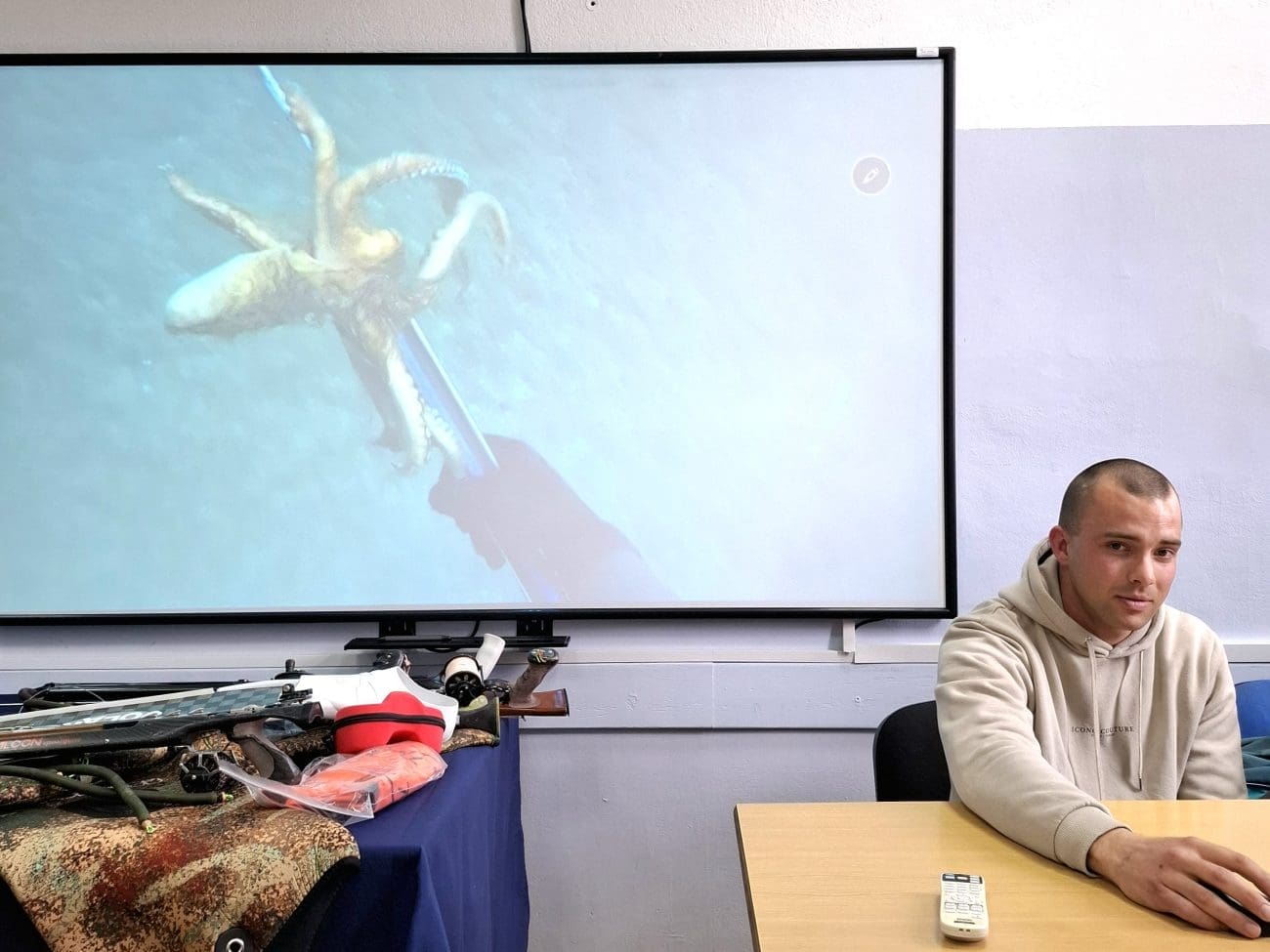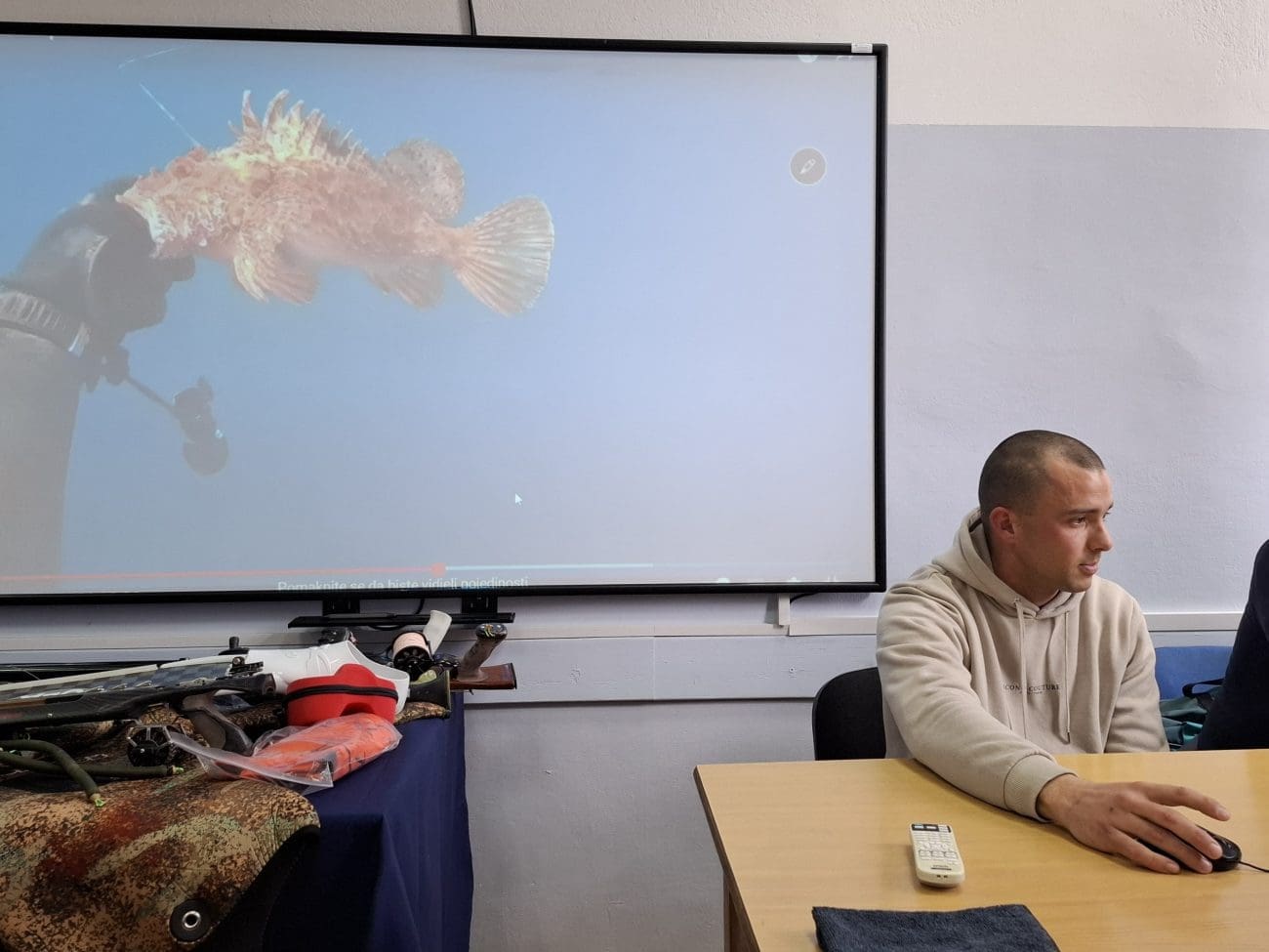 Posebno zanimljivo bilo je čuti o kondicijskim pripremama panelista za zarone. Osim iskustva lova po rupama i čeke, učenike su zanimali i trofejni primjerci ulovljenih riba i glavonožaca.