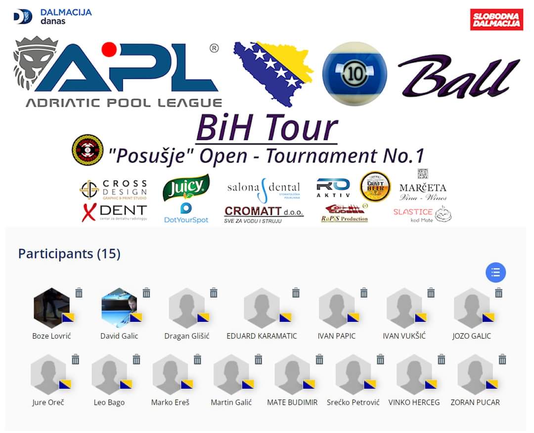 Sa izuzetnim zadovoljstvom objavljujemo da su se APL '10-Ball Tour'-u priključili igrači iz Hercegovine koji će igrati svoj serijal od 9 turnira pod nazivom APL '10-Ball BiH Tour'.