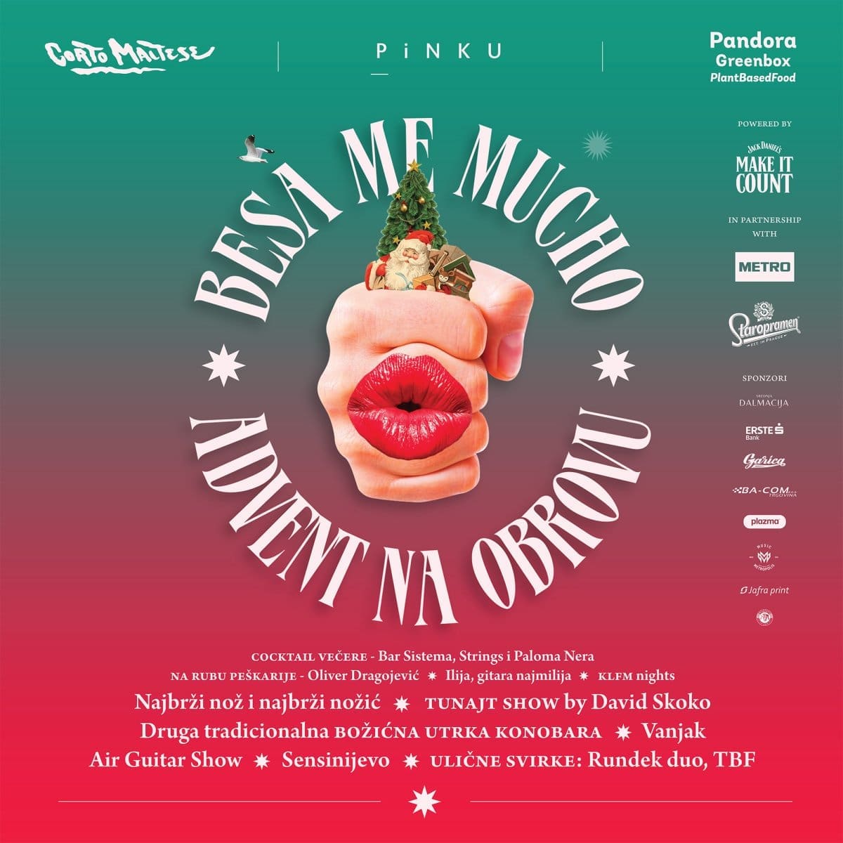 Miris kapule osjetit će se u zraku na natjecanju “Najbrži nož”, a od ove godine premijerno i “Najbrži Nožić”, u suradnji s Metro Hrvatska. David Skoko i drugi poznati hrvatski chefovi ocjenjivat će najbrže rezače kapule, a prva nagrada od tisuću eura i staž u Michelin Star restoranu zasigurno će biti velika motivacija za sudionike. U večernjem dijelu, David Skoko tranširati će svježu tunu pred gledateljima i gostima ulice Obrov, koji za “TUNAJT show” mogu rezervirati stol u restoranima adventske zone Besa Me Mucho.