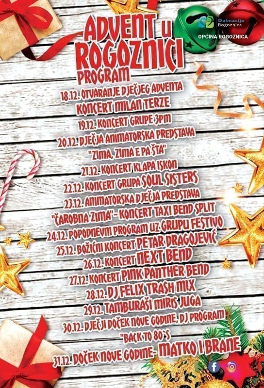 Turistička zajednica općine Rogoznica u suradnji s Općinom Rogoznica organizira manifestaciju Advent u Rogoznici. Moramo naglasiti kako je ovo prvi put da će stanovnici ove općine, kao i njihovi gosti, imati priliku osjetiti čaroliju Adventa u svome mjestu.