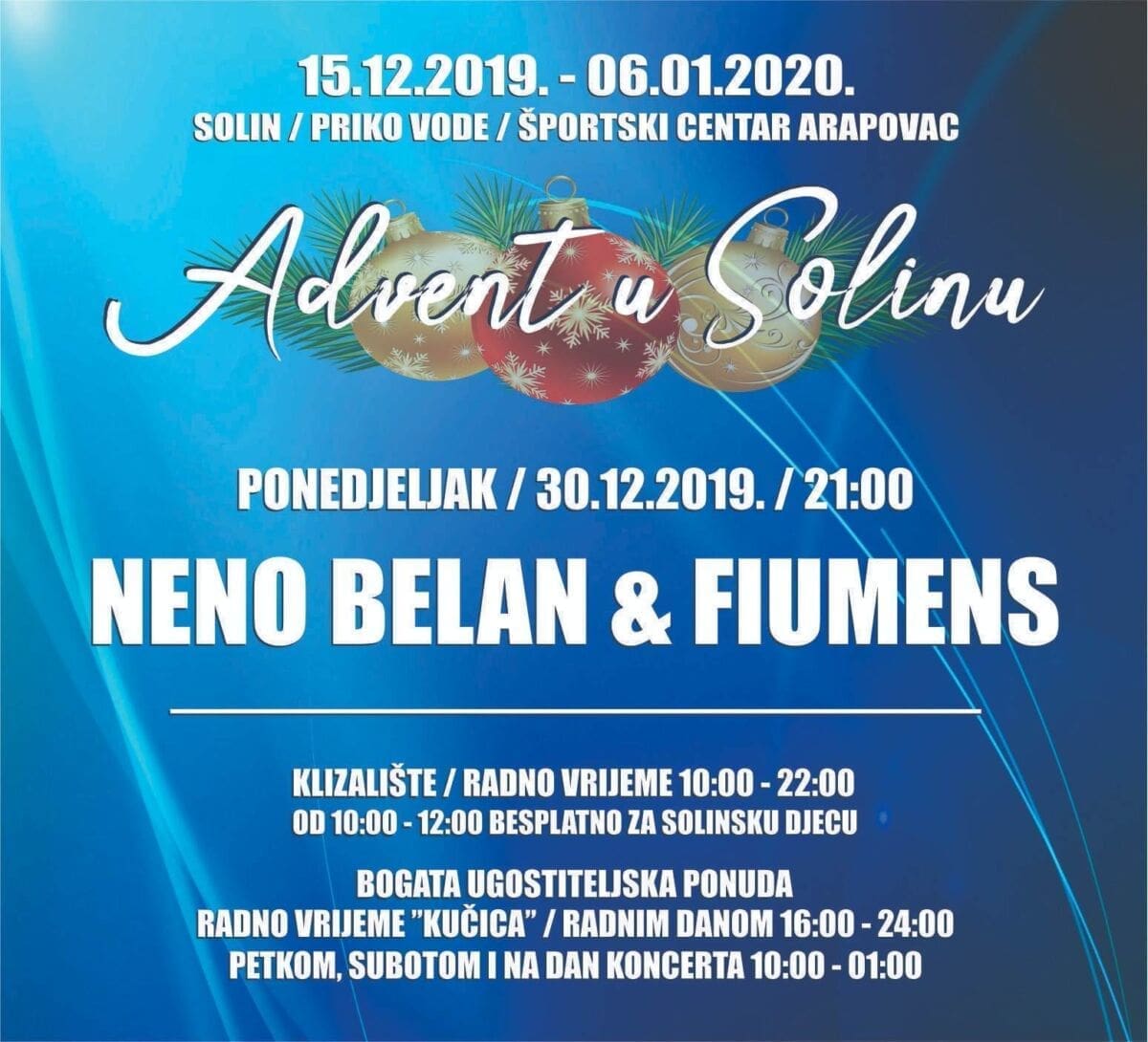Bogati ovogodišnji Advent u Solinu svojim koncertom uveličat će i Neno Belan & Fiumens u ponedjeljak, 30. prosinca s početkom u 21 sat.
