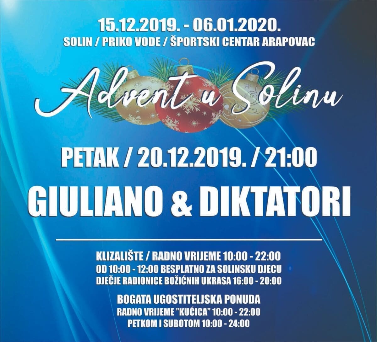 Šesti dan Adventa u Solinu donosi koncert Giuliana i Diktatora, koji će započeti u 21 sat.