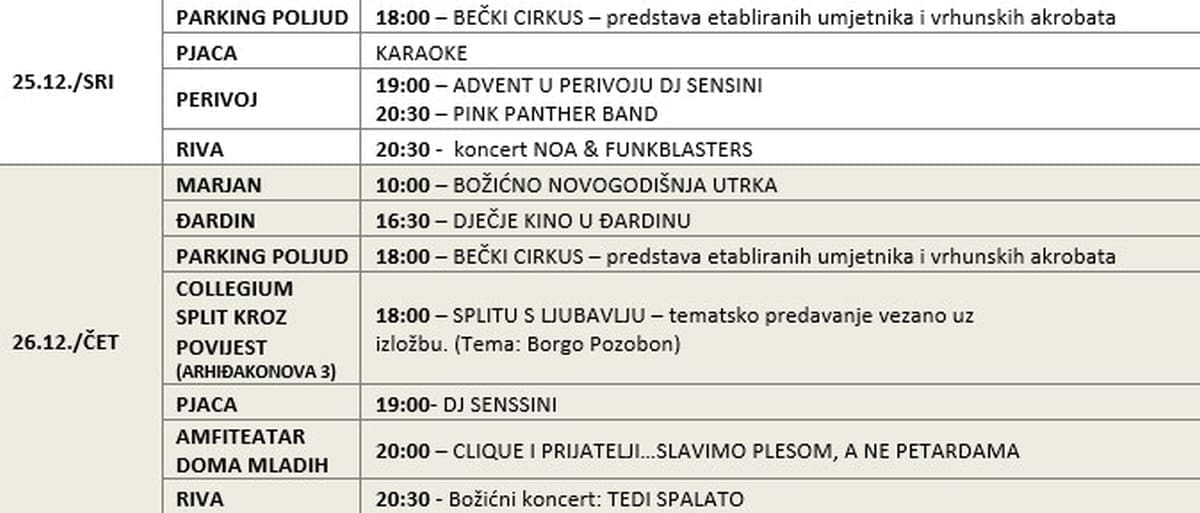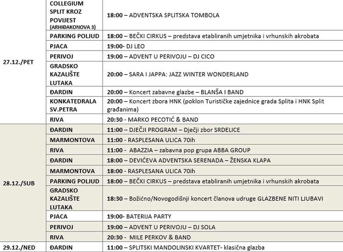 Advent u Splitu i narednih dana donosi mnoštvo raznolikih događanja.
