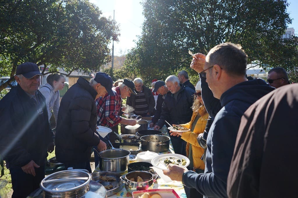Uz glazbenu pozadinu dalmatinskih klasika družilo se i uživalo u raznim ribljim i mesnim delicijama koje se u Veloj Luci inače jedu na ispraćaju stare i dočeku nove godine poput fratri, pržene ribe, rižota, sočiva, grude, slanih inćuna, popare ali i slatkih delicija, a sve se „zalilo“ čašom dobrog vina.