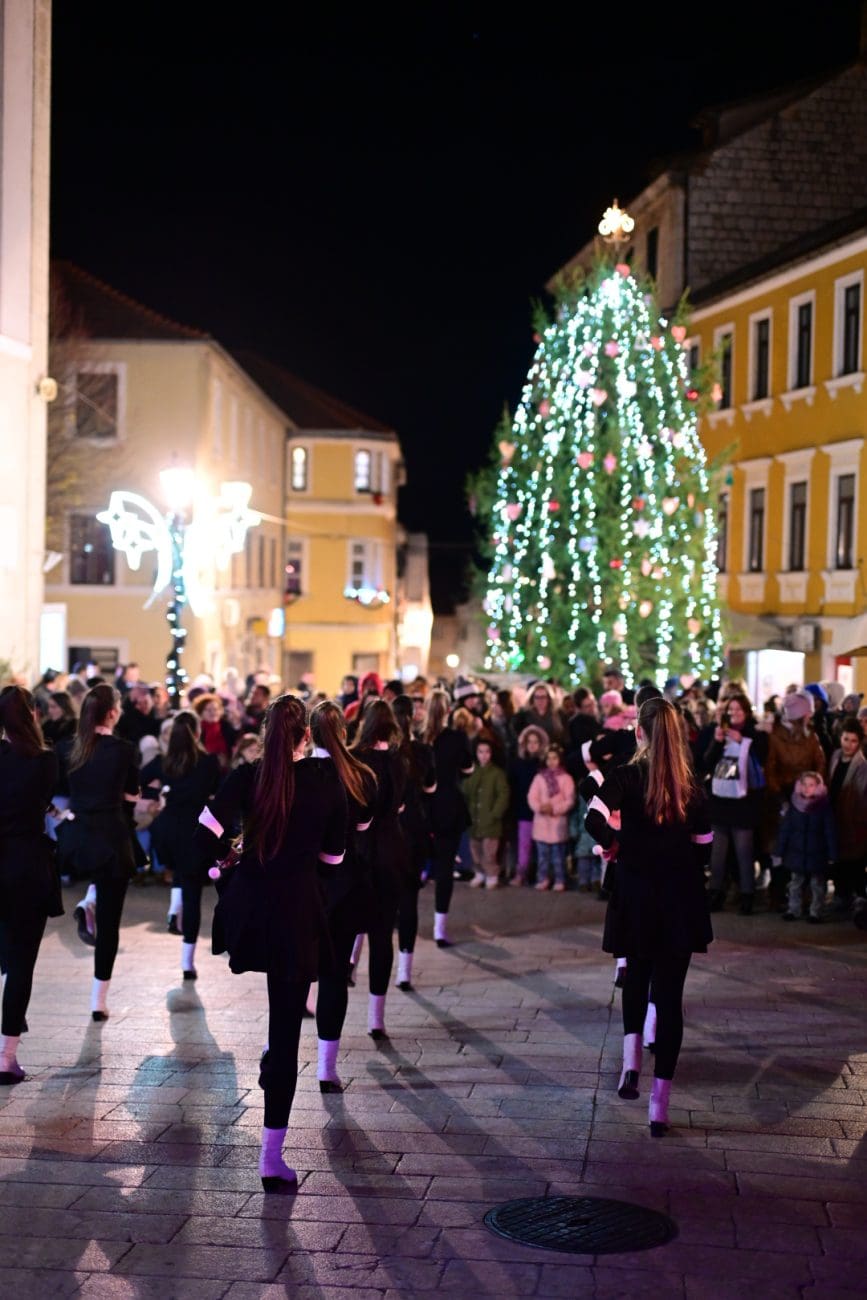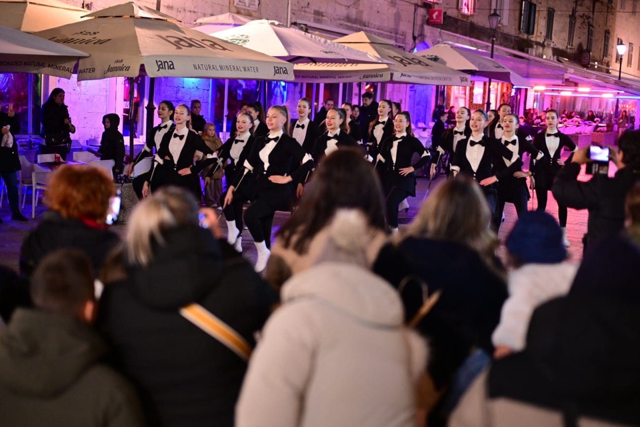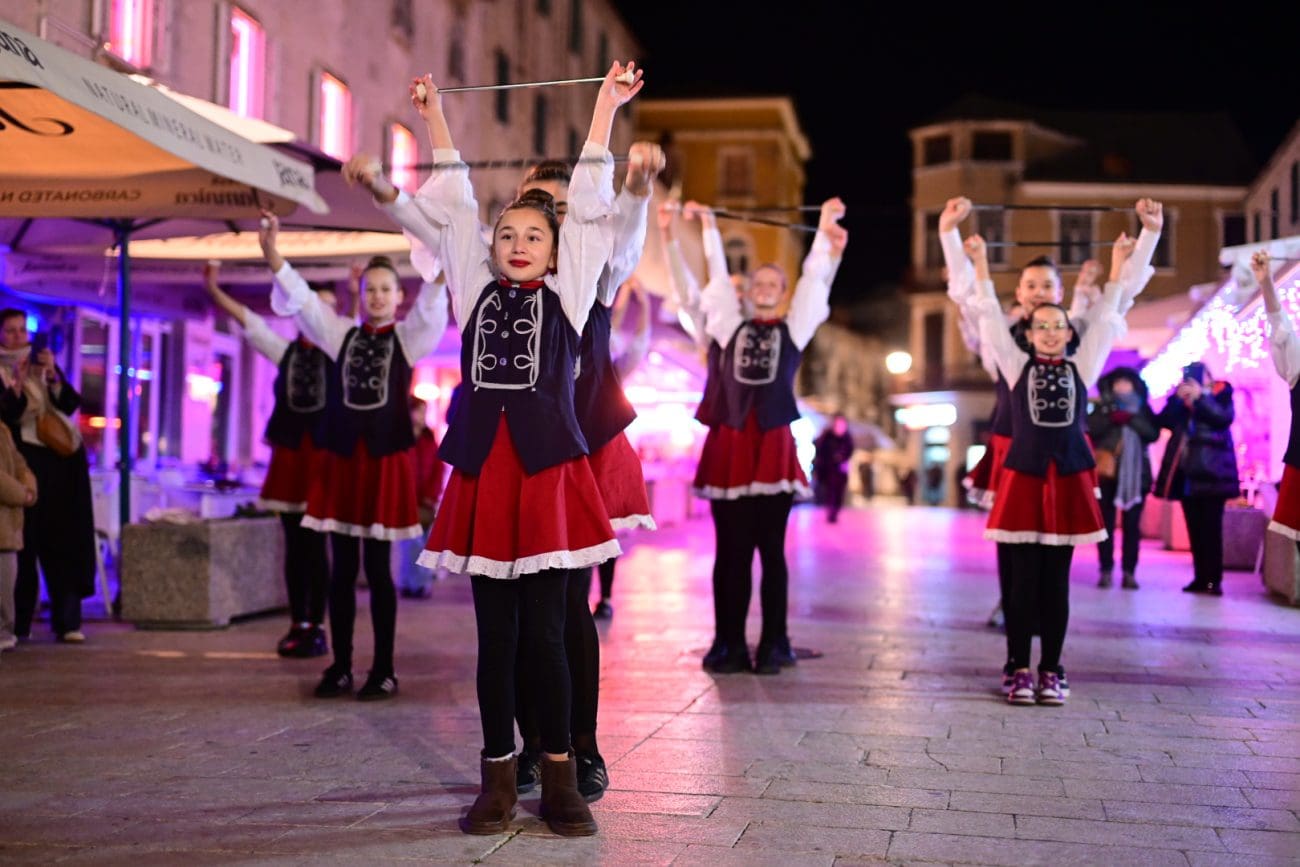 Program je započeo u 18 sati nastupom višestruko nagrađivanih Sinjskih mažoretkinja, uz prigodne radionice u Palacini i bogatu gastronomsku ponudu – sinjski uštipci, fritule, medenjaci, topli napitci i kuhano vino dodatno su obogatili blagdanski ugođaj.