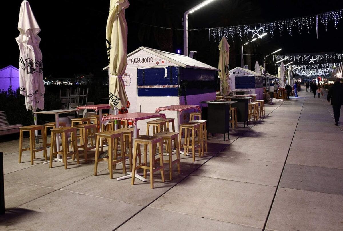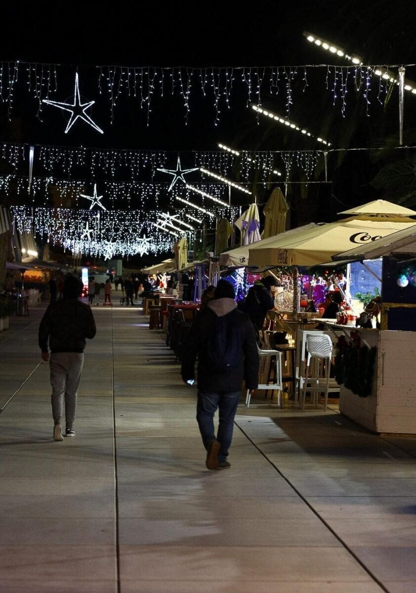 Ali ni Advent na splitskoj rivi nije ništa manje atraktivan. Kućice u nizu uređene su u božićnom ruhu, sve blješti, lampice trepere, a miris kuhanog vina i pečenih kobasica širi se niz rivu.