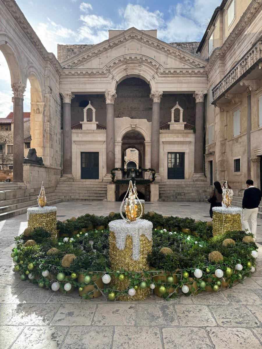 Postavljen je veliki adventski vijenac, a za razliku od prijašnjih godina, ove je godine smješten - na Peristil. Dao je jedan sasvim poseban ugođaj tom carskom trgu.