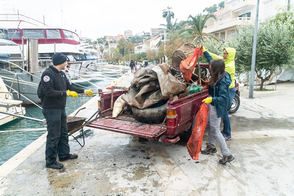 Akcija se provela u nedjelju, kada je cijelu Hrvatsku zahvatilo dugo najavljivano nevrijeme. Međutim, ronioci i lokalni volonteri pokazali su da zaljubljenike u more čak i nepovoljni vremenski uvjeti ne mogu spriječiti da sudjeluju u aktivnostima koje pomažu u očuvanju morskog okoliša. Zajedničkim trudom volonteri su iz mora uklonili približno 9 kubičnih metara otpada - od guma, cijevi, ploča, tepiha, posuđa, dijelova namještaja, usisavača, bušilica itd.