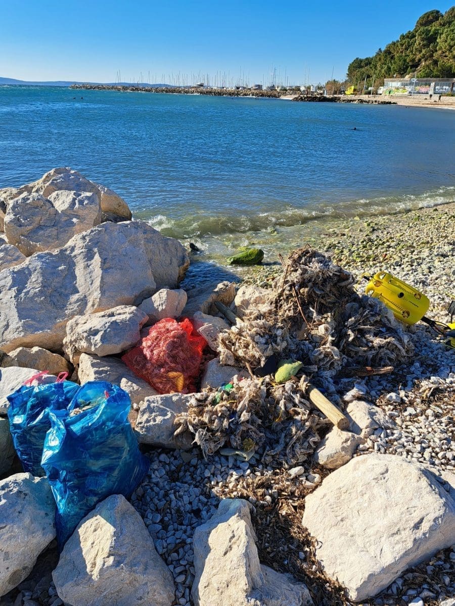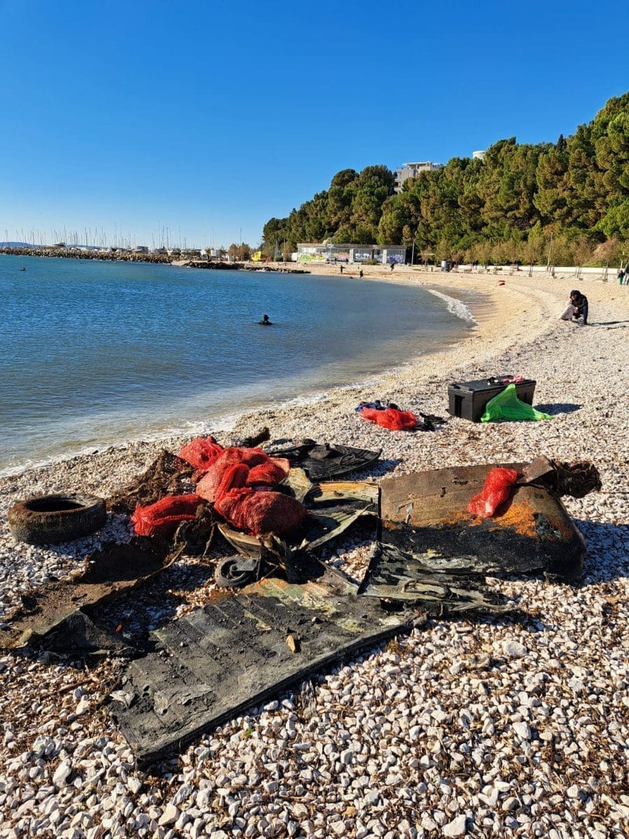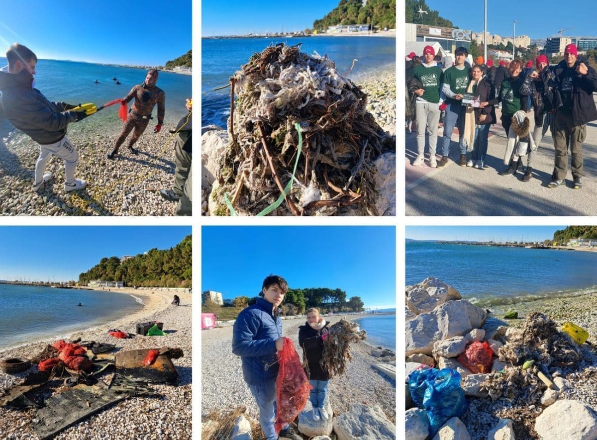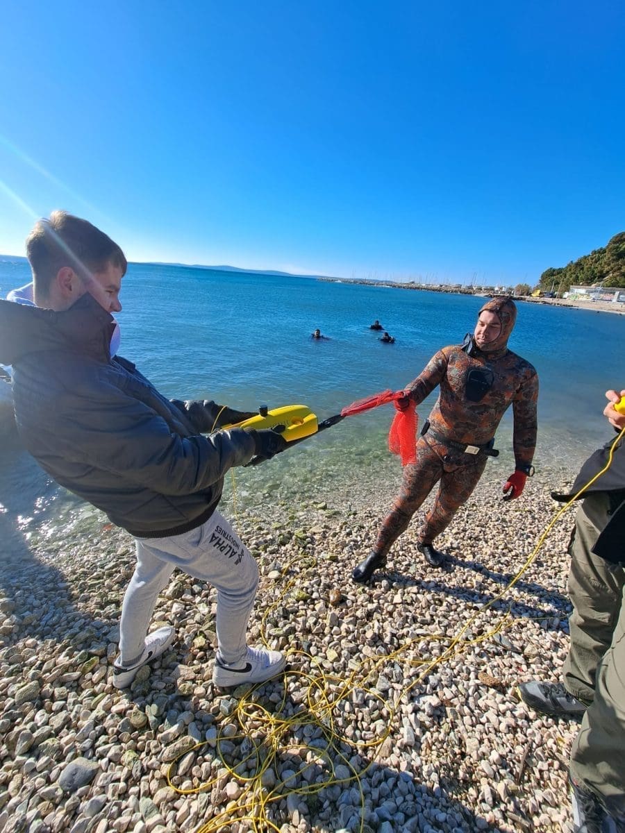 Jaka bura, njezini udari i hladnoća nisu spriječili 'obitelj' entuzijasta da u akciji pod pokroviteljstvom Turističke zajednice grada Splita i volontera ronilaca sakupe 30 automobilskih guma, 200 vreća otpada, dijelove dvaju 'podvodnih' komunalnih kontejnera itd.