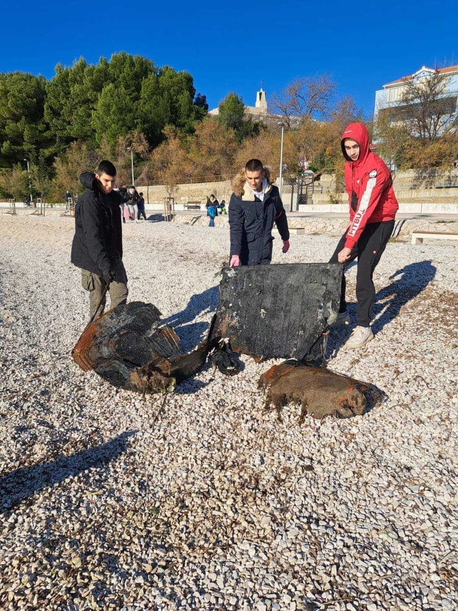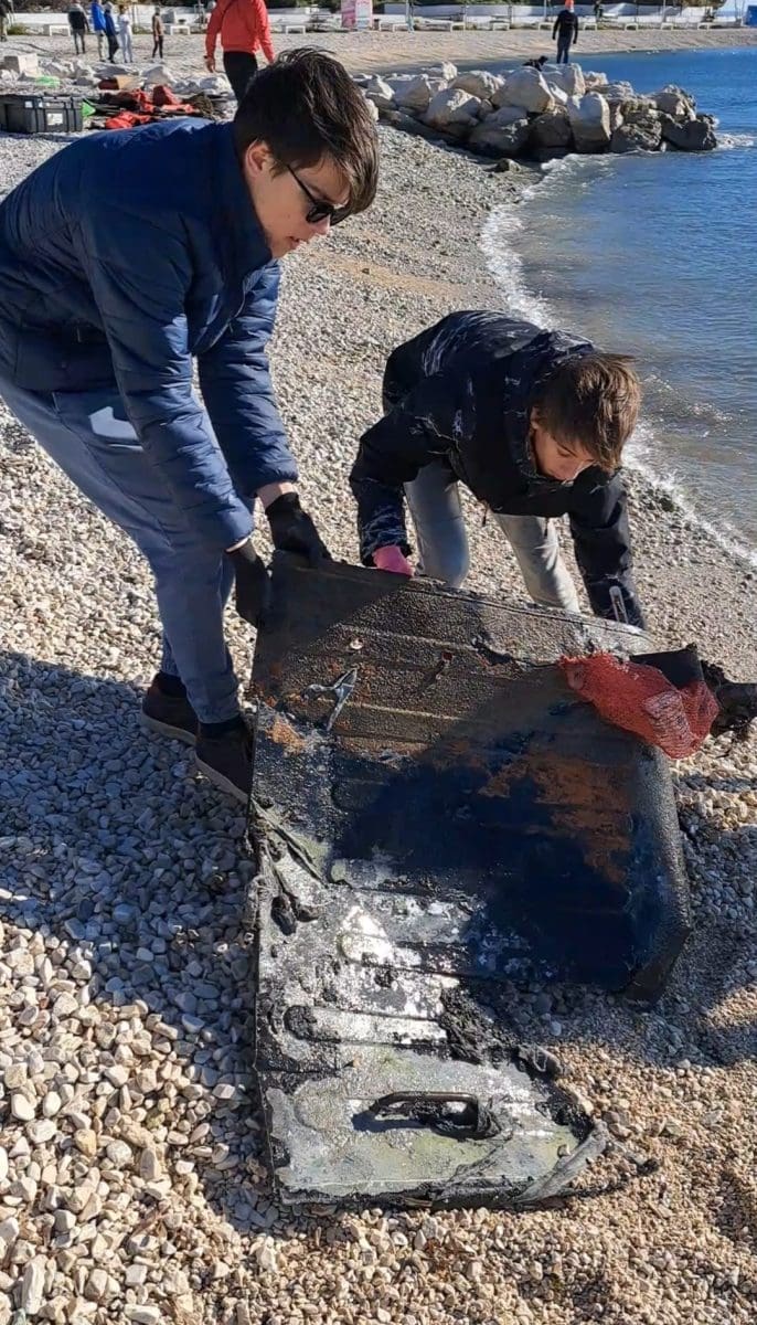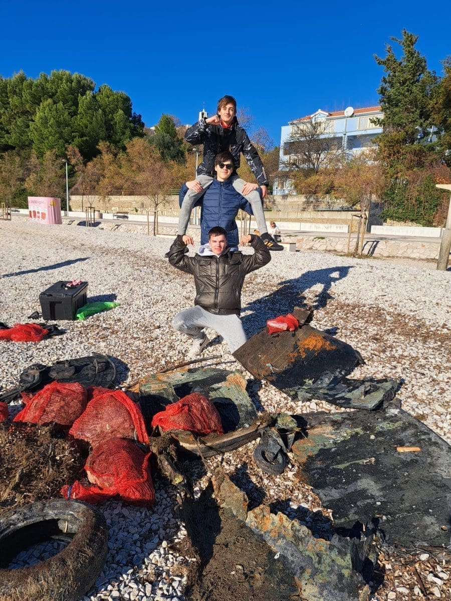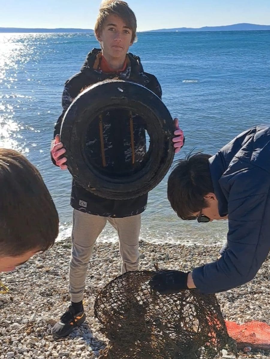 Jaka bura, njezini udari i hladnoća nisu spriječili 'obitelj' entuzijasta da u akciji pod pokroviteljstvom Turističke zajednice grada Splita i volontera ronilaca sakupe 30 automobilskih guma, 200 vreća otpada, dijelove dvaju 'podvodnih' komunalnih kontejnera itd.