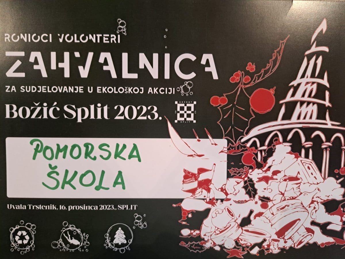 U akciji je sudjelovao dio 'dronaša'. Putem robotske ruke učenici ribarsko-nautičkog smjera ROV-om izvlače i otpad iz mora. 'Zdravo more' ima i podgrupu ronioca (učenici iz svih smjerova Škole). Škola i grupa ponosni su što u akciji 'Eko Sub-Advent' među roniocima bila njezina dva bivša učenika. Članovi grupe s mentoricom zahvaljuju organizatorima na pozivu i gostoprimstvu. Uz huk bure iz dokumentarca, pozivaju omladinu i građanstvo da sudjeluju u budućim eko akcijama.