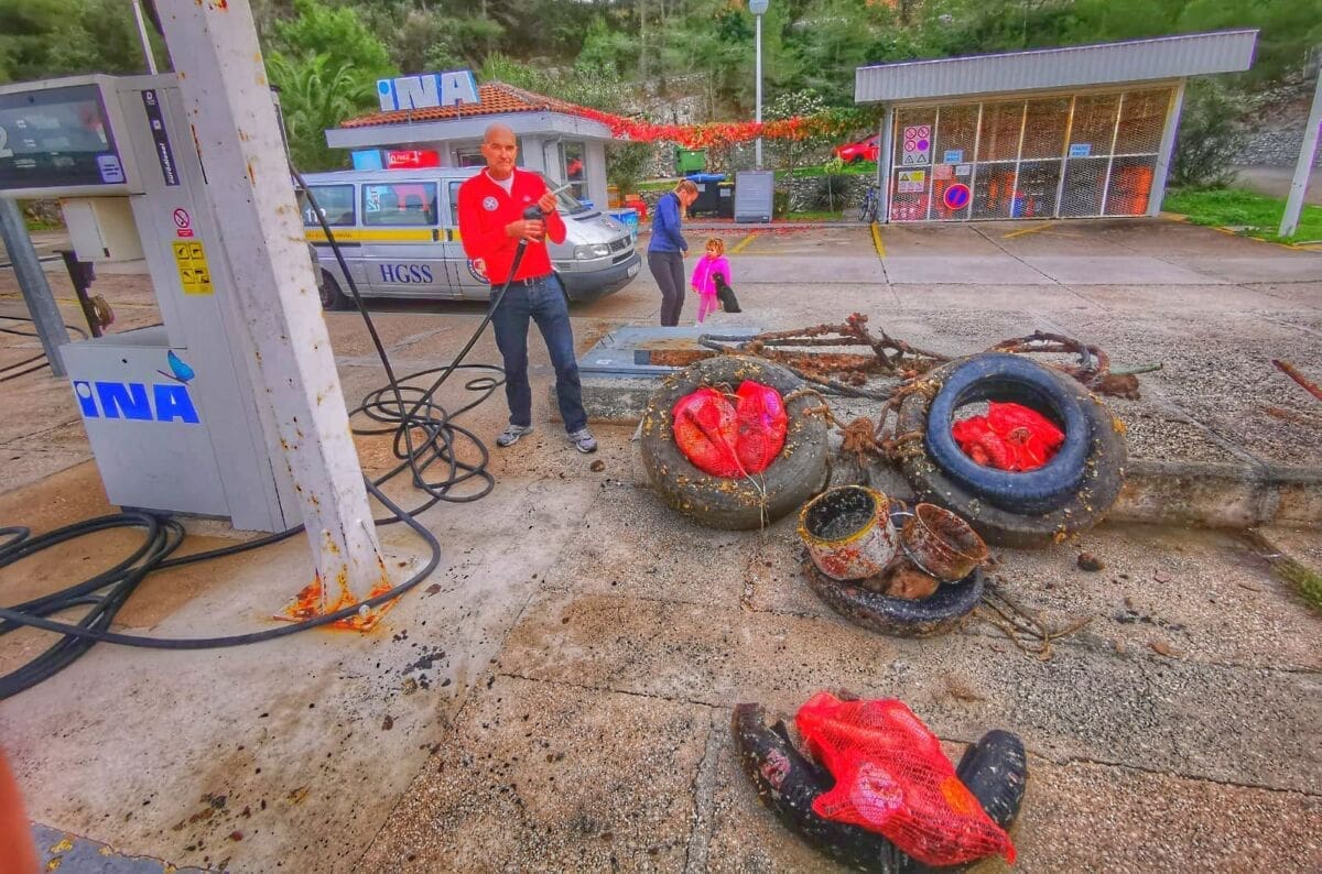HGSS je u subotu u Milni s članovima Ispostave Brač napravila hvale vrijednu akciju čišćenja podmorja oko INA-e benzinske stanice u Milni.