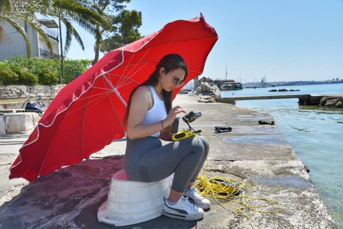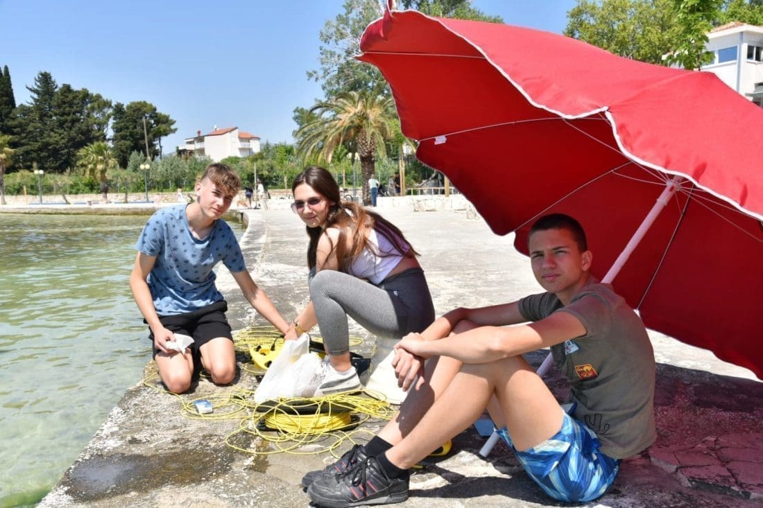 Posebnu pozornost odvukla su djeca iz Pomorske škole Split s njihova profesoricom, koja su s naoko ''čudnom '' napravom čistila podmorje te su nas zainteresirali da saznamo o čemu se radi.
