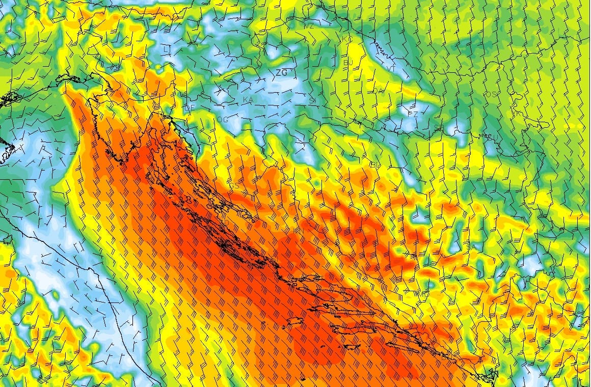Pretežno oblačno bit će u vrlo vjetrovitu nedjelju. Povremeno će biti kiše. Puhat će jako do vrlo jako jugo koje će na moru imati udare do 100 km/h. Očekuju se veći poremećaji u prometu morem. Temperature se danju neće puno mijenjati i većinom će biti od 12 do 18°C.