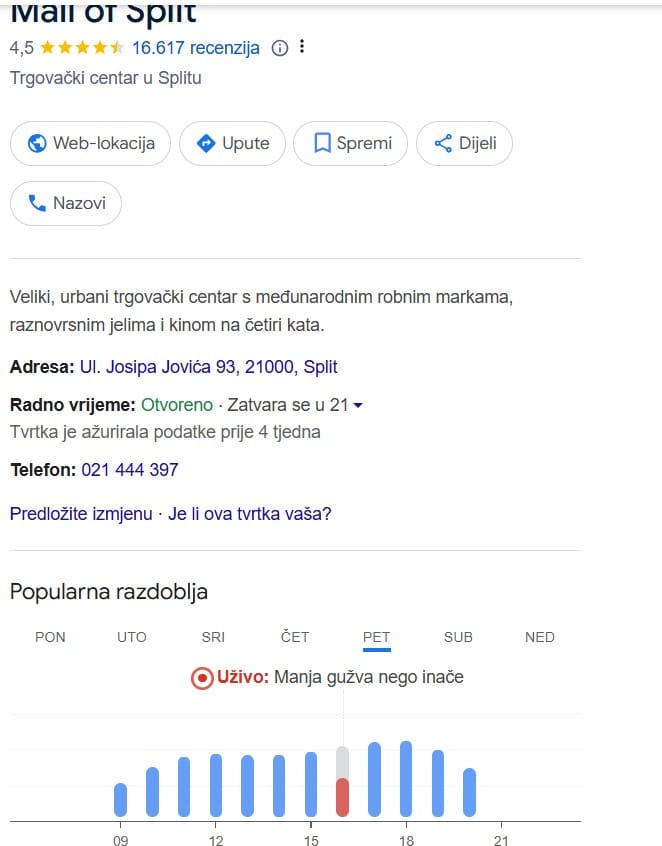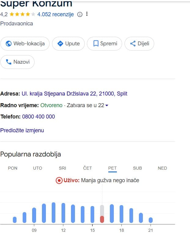 To potvrđuju i podaci s Googlea koji pokazuju u koje je doba dana najveća gužva u pojedinoj trgovini. Podaci pokazuju isto, odnosno da gužve nigdje nema, dok je posjećenost svedena na minimum.