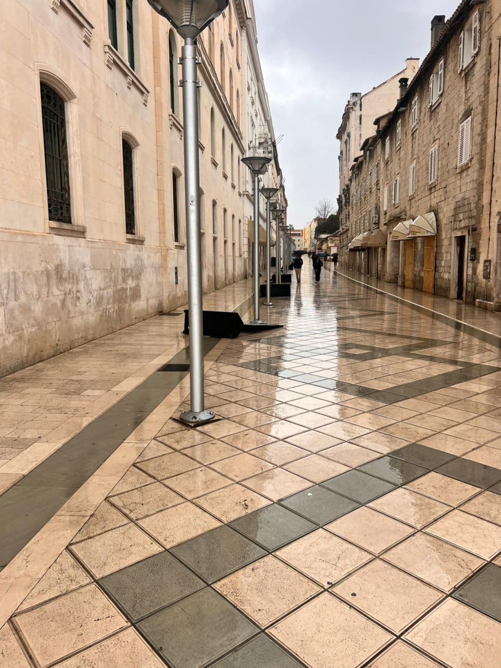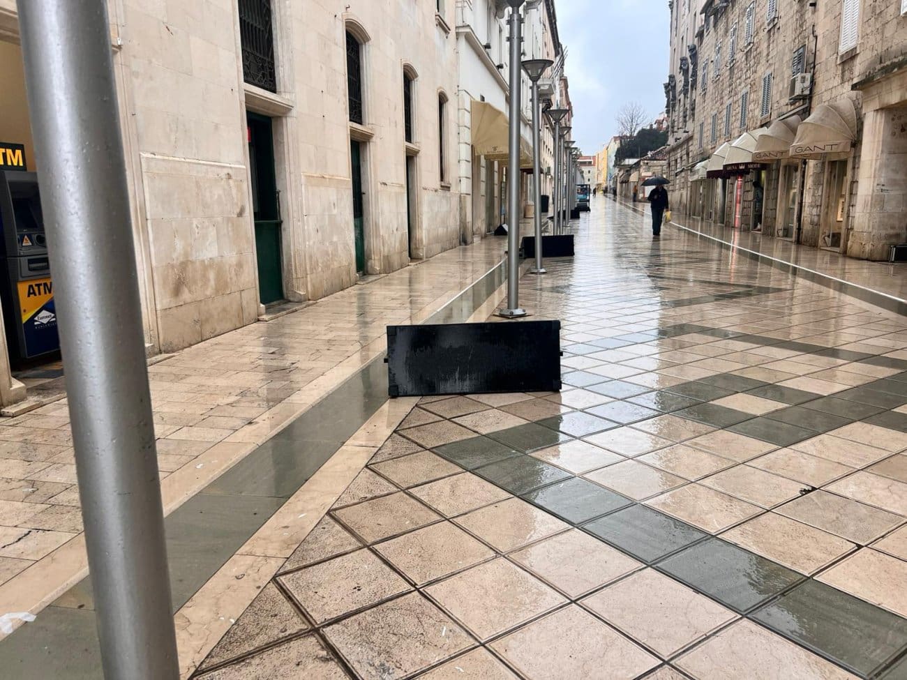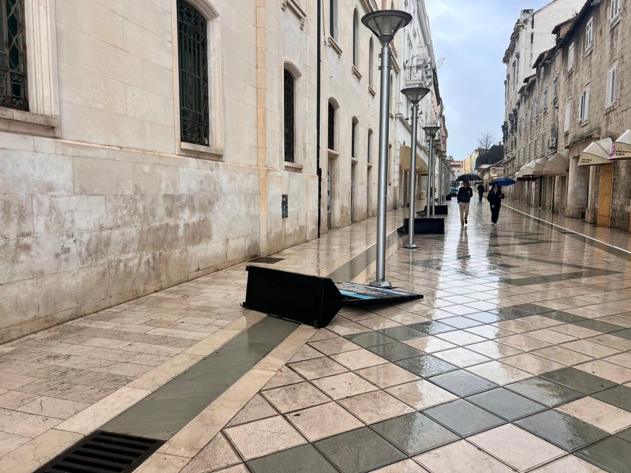 Danas, međutim, jake udare juga koji puše gradom nije moguće ignorirati – vjetar je olujan, a svi panoi sada leže na tlu. No, ako ste pomislili da ih je srušilo nevrijeme, bili biste u krivu. Kako doznajemo, panoi su svjesno i planski položeni na tlo upravo zbog vjetra - kako bi se spriječilo njihovo oštećenje ili potpuno rušenje.