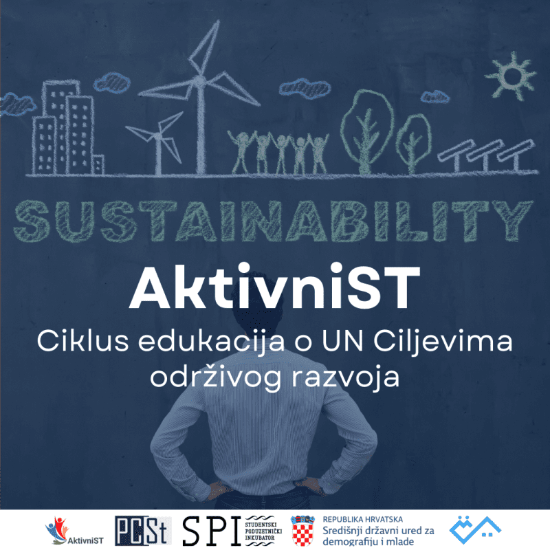 U sklopu projekta AktivniST u lipnju nastavljamo sa ciklusom edukacija o UN Ciljevima održivog razvoja kroz koje će se ugostiti razne stručnjake iz privatnog sektora, javnog sektora i neprofitnih organizacija koji će na primjeru svojih projekata i aktivnosti predstaviti kako oni doprinose, a kako svi mi to možemo doprinijeti, ostvarivanju UN Ciljeva održivog razvoja unutar područja u kojem djeluju i posluju.