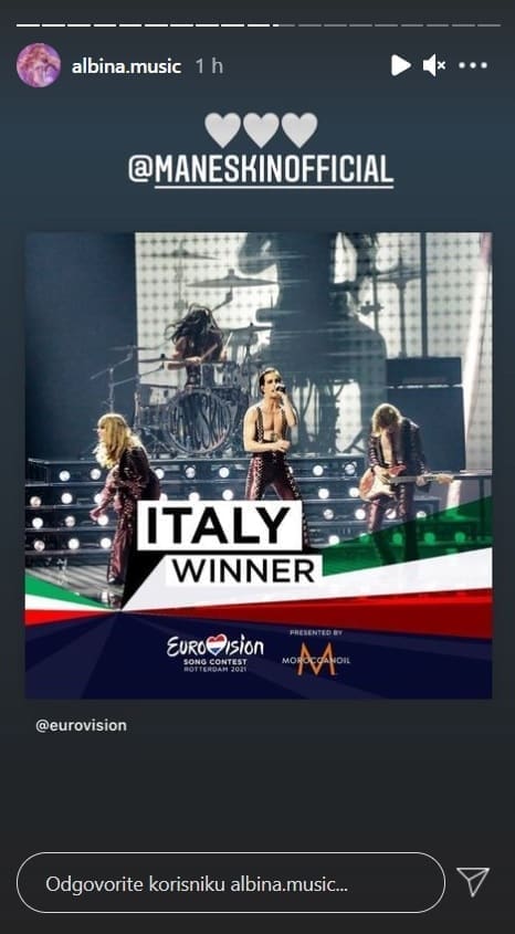 Albina je podijelila objavu sa službenog profila Eurosonga na kojoj piše kako su Talijani pobjednici.
