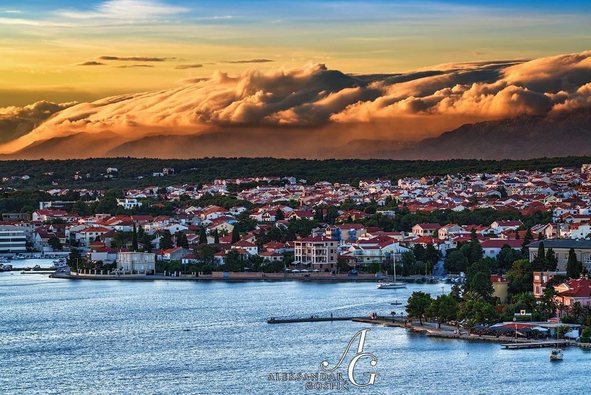 Ogromna burna kapa koja se sa zalazećim suncem pretvorena u lavu, prelijeva se preko Velebita, dok se dan u Zadru bliži kraju...
